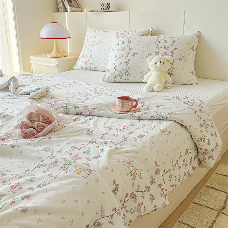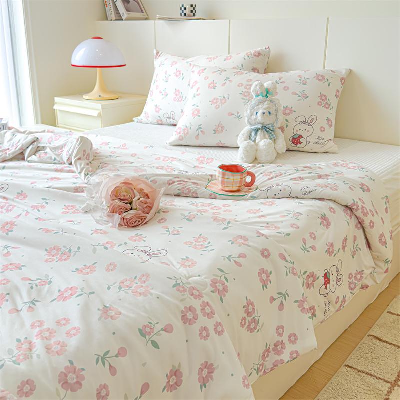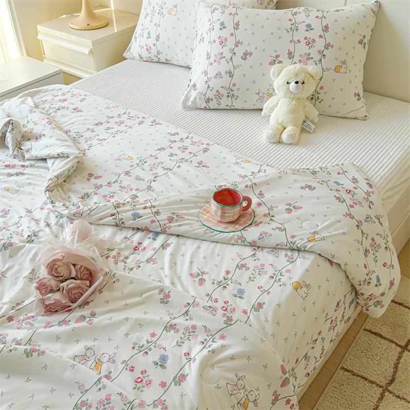 Одеяло с рисунком в виде садовых цветов, летнее, с кондиционером, тонкое, с милым кроликом, мягкое, стеганое одеяло для детей, мальчиков и девочек