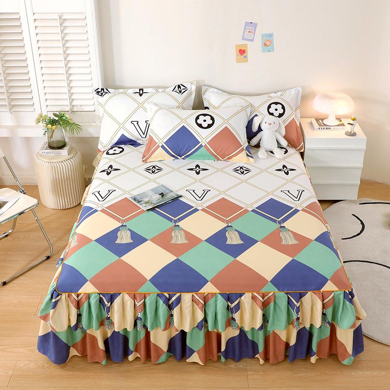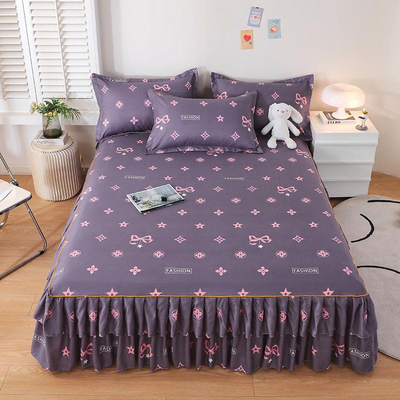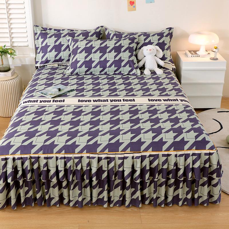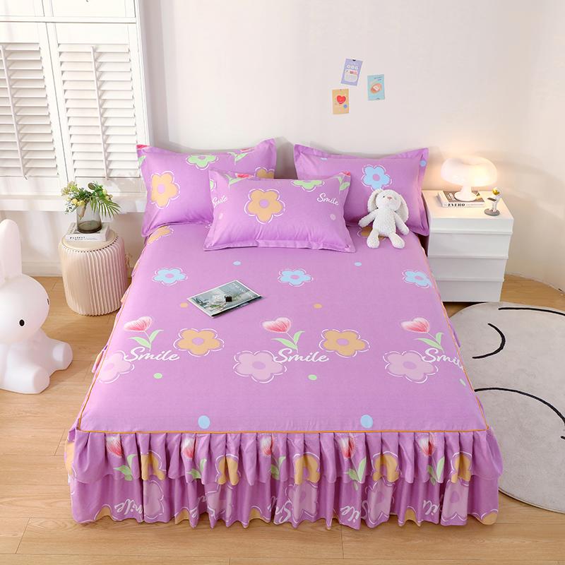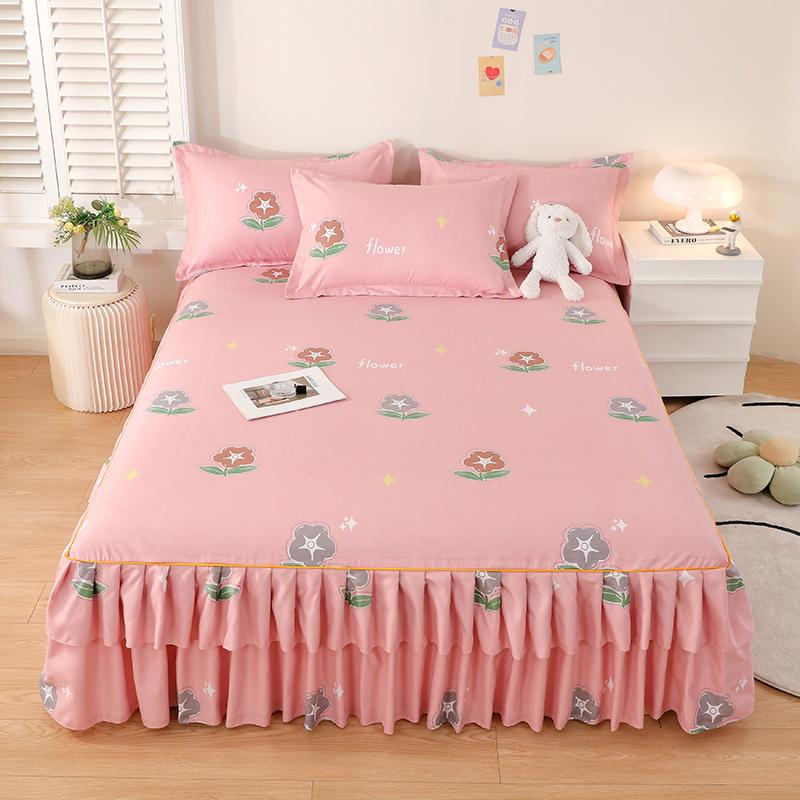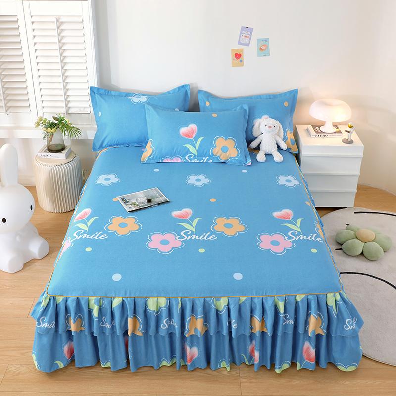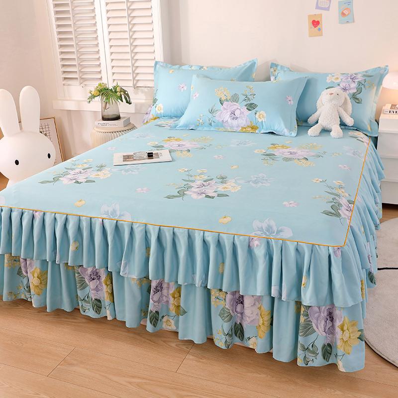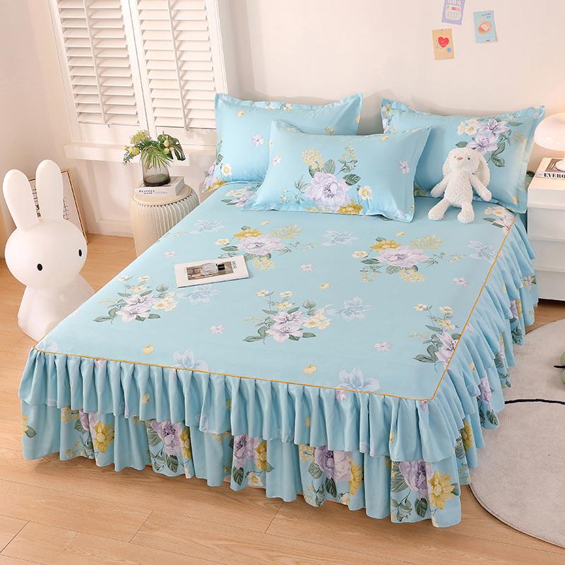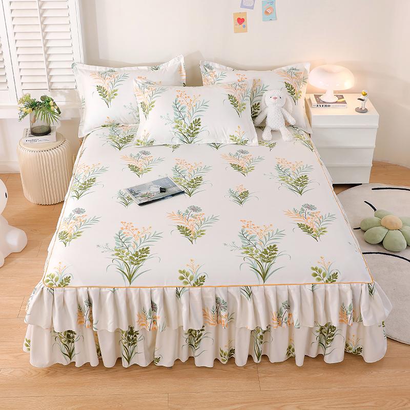 Элегантный цветочный узор на кровать, комплект постельного белья, нескользящий чехол для матраса, мягкое удобное покрывало с оборками, декор для спальни