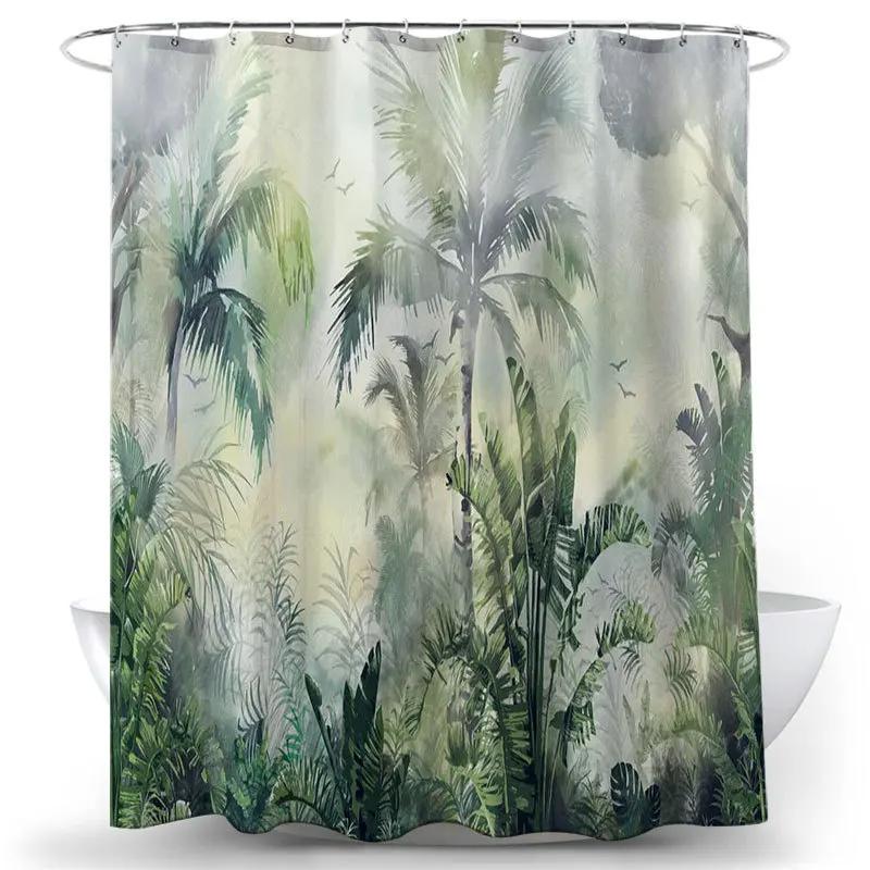Занавеска для душа с тропическими растениями, зеленые листья, водонепроницаемая полиэстеровая занавеска для ванной комнаты, украшение для ванной в скандинавском стиле с крючком