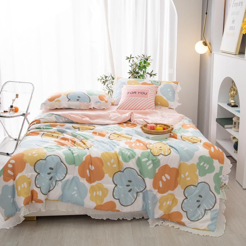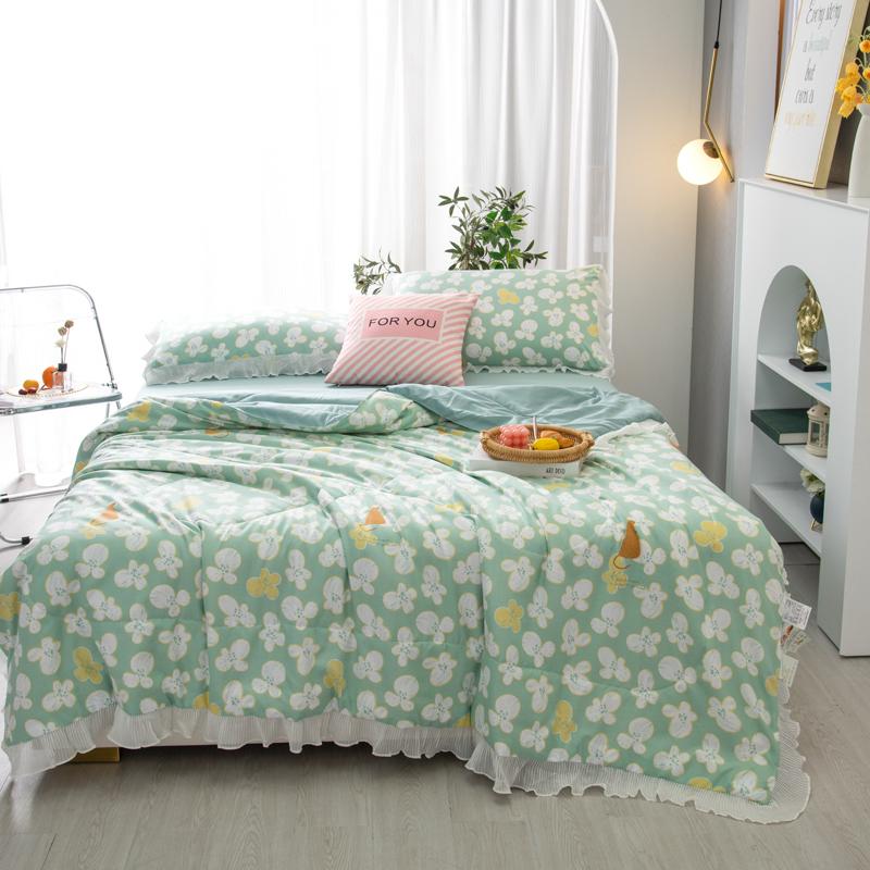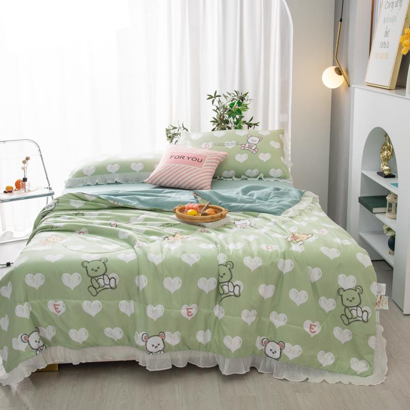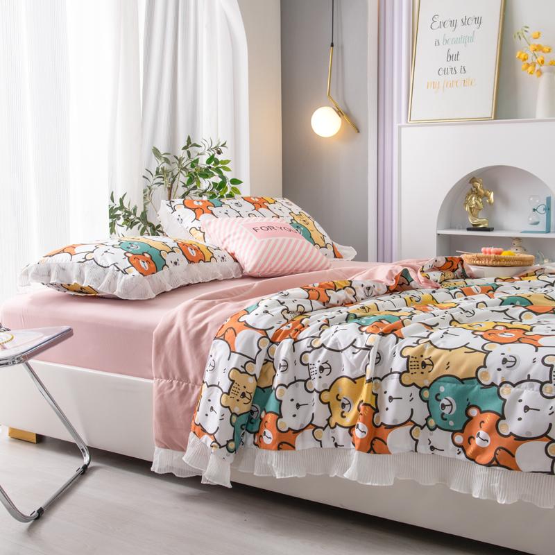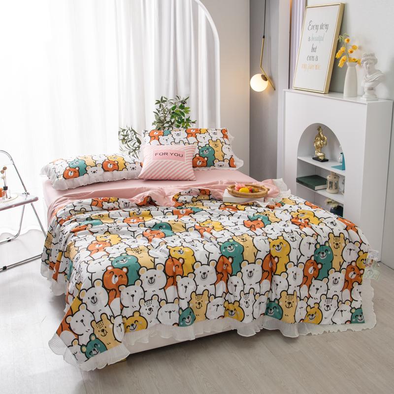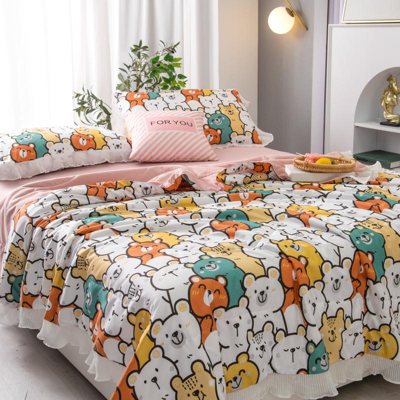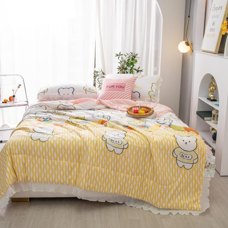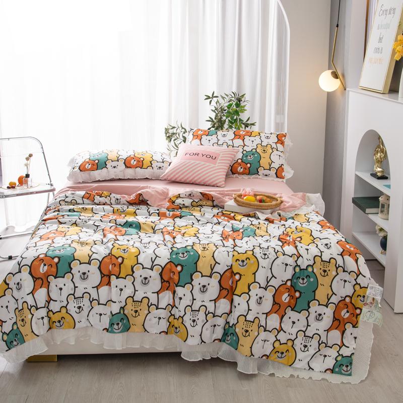 Мультяшный медведь Летнее одеяло Принцесса Оборки Кондиционер Тонкий стеганый стеганый плед Приятный для кожи Удобный стеганый стеганый плед Можно стирать