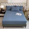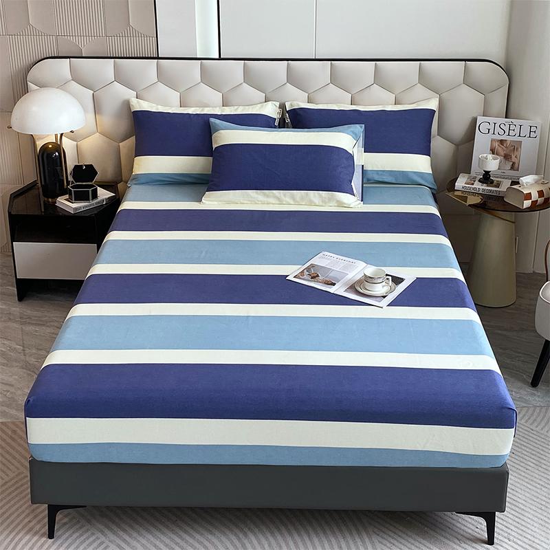 Комплект постельного белья из 3 предметов, простой, синий, в полоску, мягкий, приятный для кожи, утолщенный, 100% хлопок, эластичный, размер Queen Size