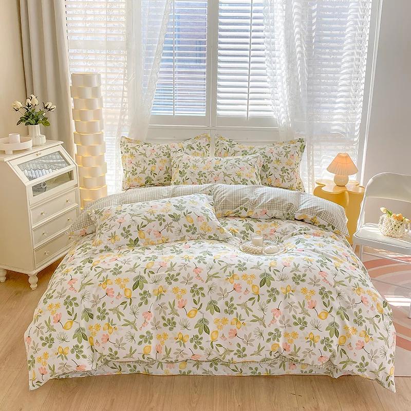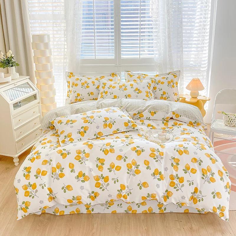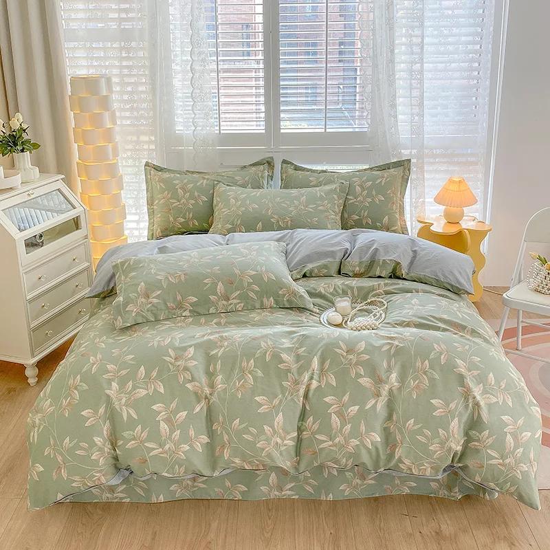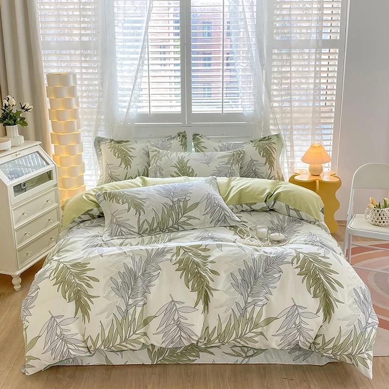 Комплект постельного белья с узором из лимонно-зеленых листьев, комплект из 3 предметов хлопкового постельного белья, мягкий, удобный, приятный для кожи, наволочки