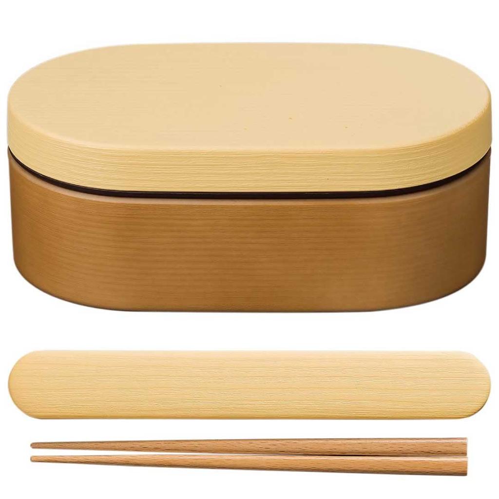 Овальный бенто Showa Lunch Rice Wood поставляется с палочками для еды и средством для чистки палочек, сделано в Японии, 4979543S, коробка, не прилипает, зерно, смола, набор, коробка, желтый,