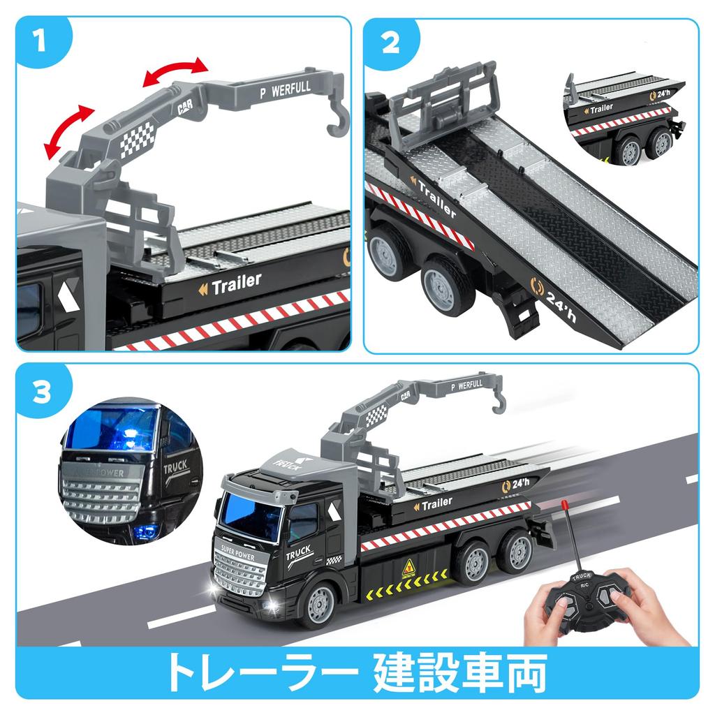 ``Игрушечная радиоуправляемая машинка'' Супер крутой полицейский прицеп с дистанционным управлением, прост в управлении и управлении, может двигаться вперед и назад, останавливаться и возвращаться в исходное положение.. Дети и друзья могут весело провести время за рулем полицейских машин и грузовиков дома или на улице.. 1:Грузовик в масштабе 36, дети гуляют и играют с забавными игрушечными машинками.