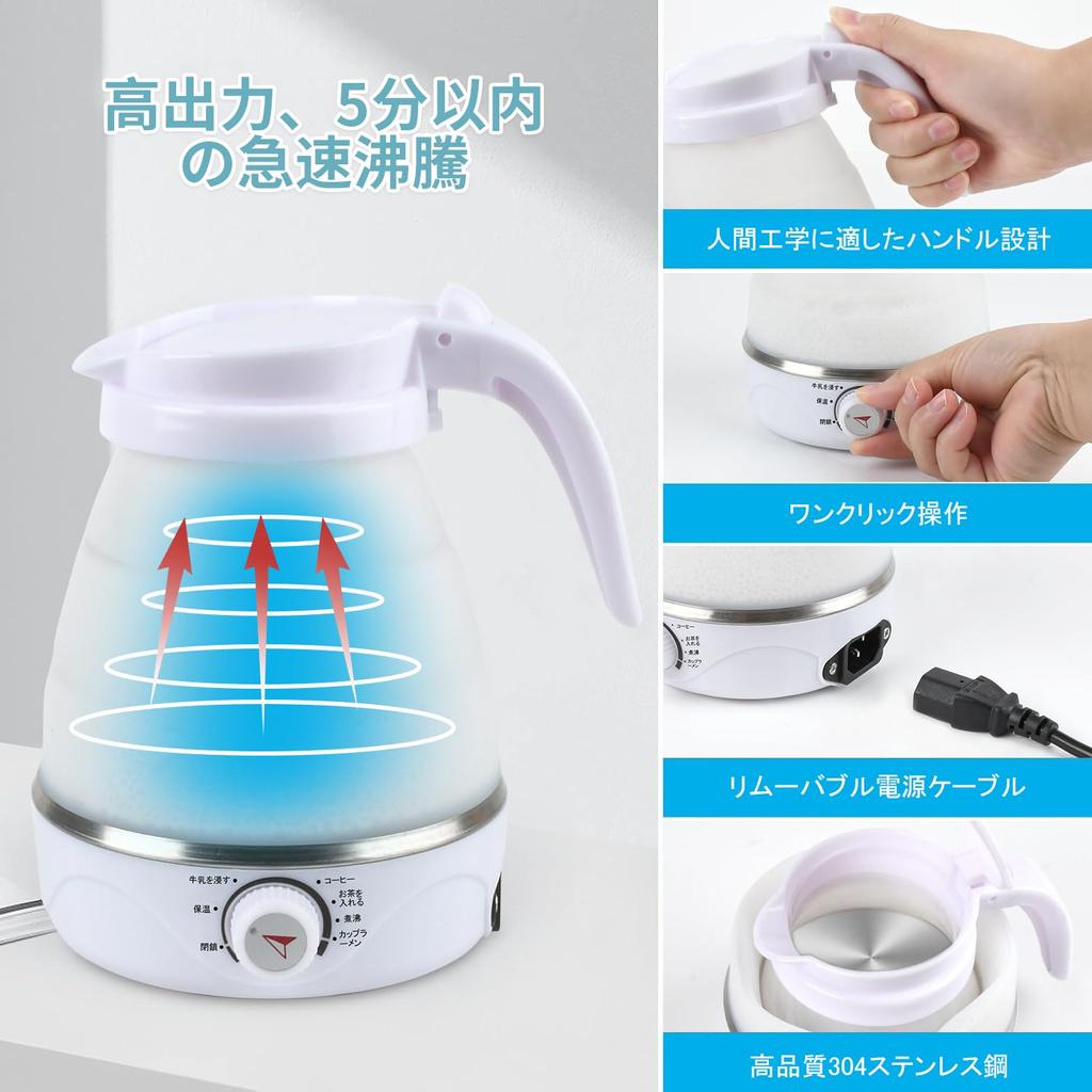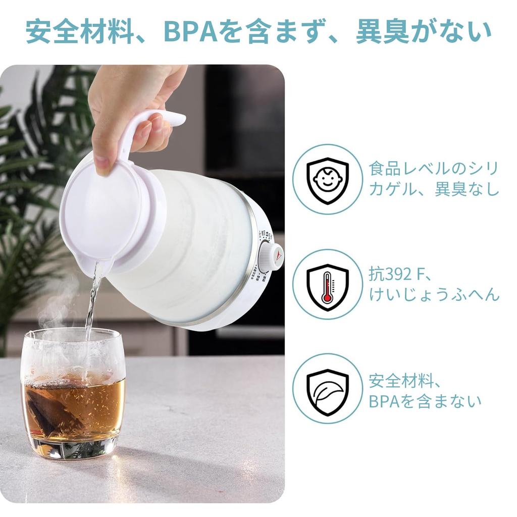 【Тройная защита】Складной дорожный электрический чайник имеет различные защитные функции контроля температуры и тройную автоматическую защиту от отключения питания, включая автоматическое отключение при закипании, автоматическое отключение при высыхании, автоматическое отключение при перегреве.. Обеспечение безопасного использования и реализация более безопасного использования