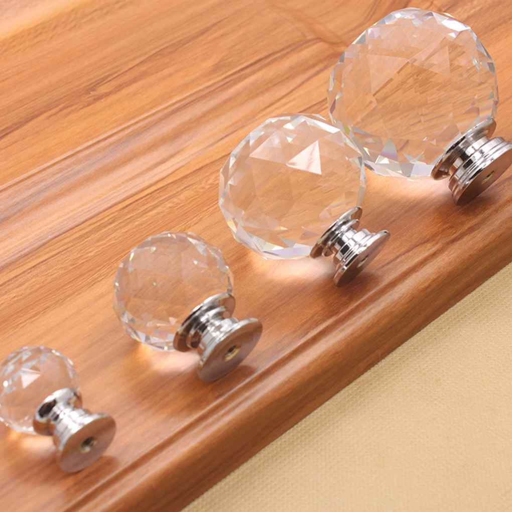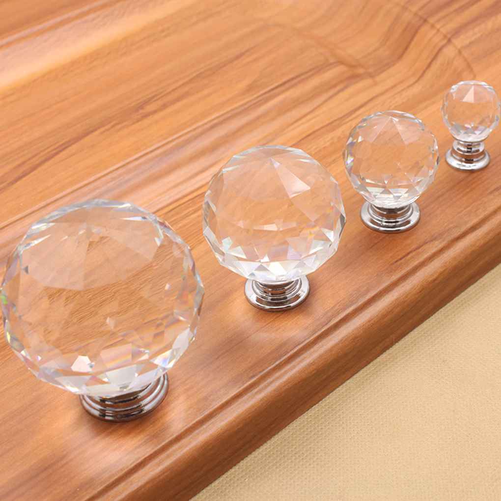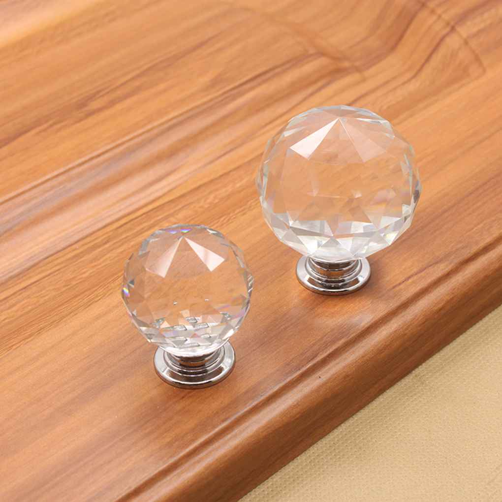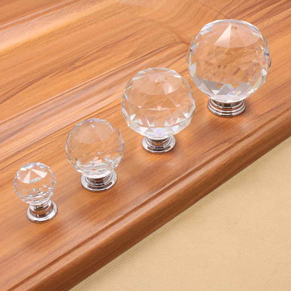 Ручка из хрусталя, сферическая ручка для выдвижного ящика, ручка для мебельного шкафа с одним отверстием - розовый - 40 мм