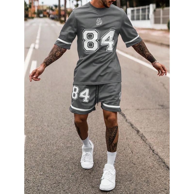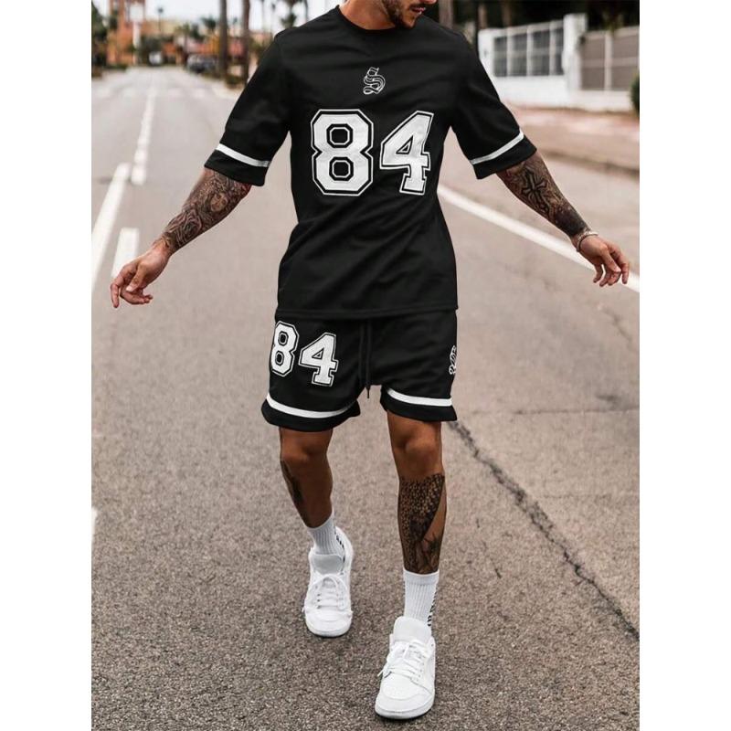 Комплект из 2 предметов, летняя мужская повседневная футболка и пляжные шорты, повседневные мужские шорты с коротким рукавом в уличном стиле