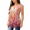 Женская мода плиссированная безрукавка повседневная футболка жилет топ на пуговицах