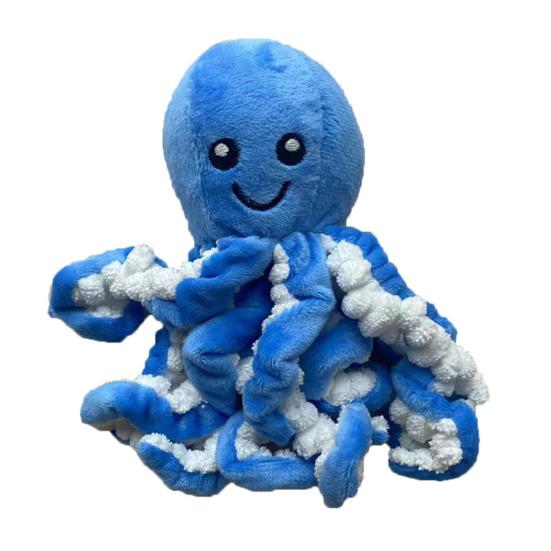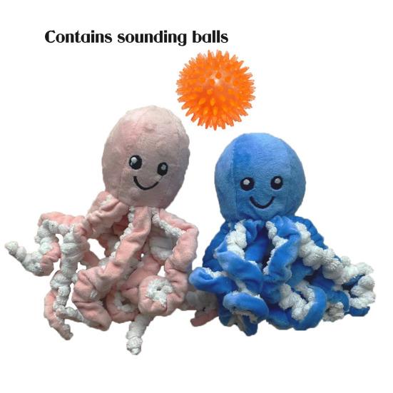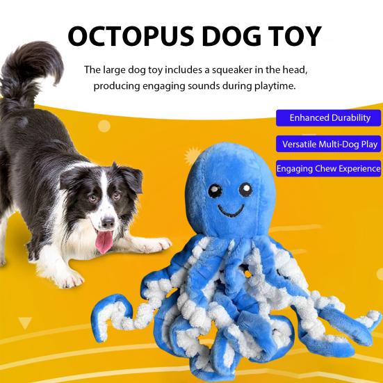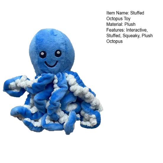 Представляем мягкую игрушку осьминога — прочную и необычную игрушку для вашего пушистого друга.. Эта мягкая интерактивная игрушка-пищалка в виде осьминога, изготовленная с использованием уникальной технологии, имеет прочную плюшевую подкладку, которая прошита двойным швом и усилена для дополнительной прочности.. Вашему щенку понравится прижиматься к мягкому плюшевому материалу, изготовленному из натурального хлопка.