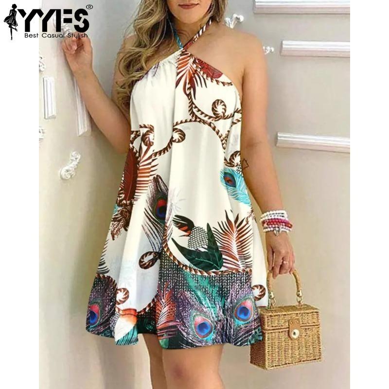 YYFS Женская мода лето весна цветочный узор принт без рукавов свисающий вырез свободная талия повседневные платья