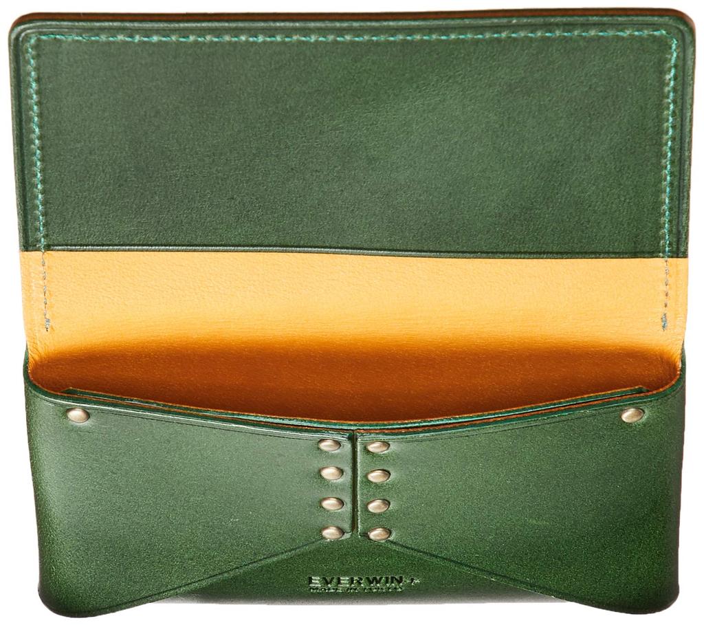 Визитница складная визитница из натуральной кожи 22501 зеленого цвета [Ebawin] [Сделано в Японии]