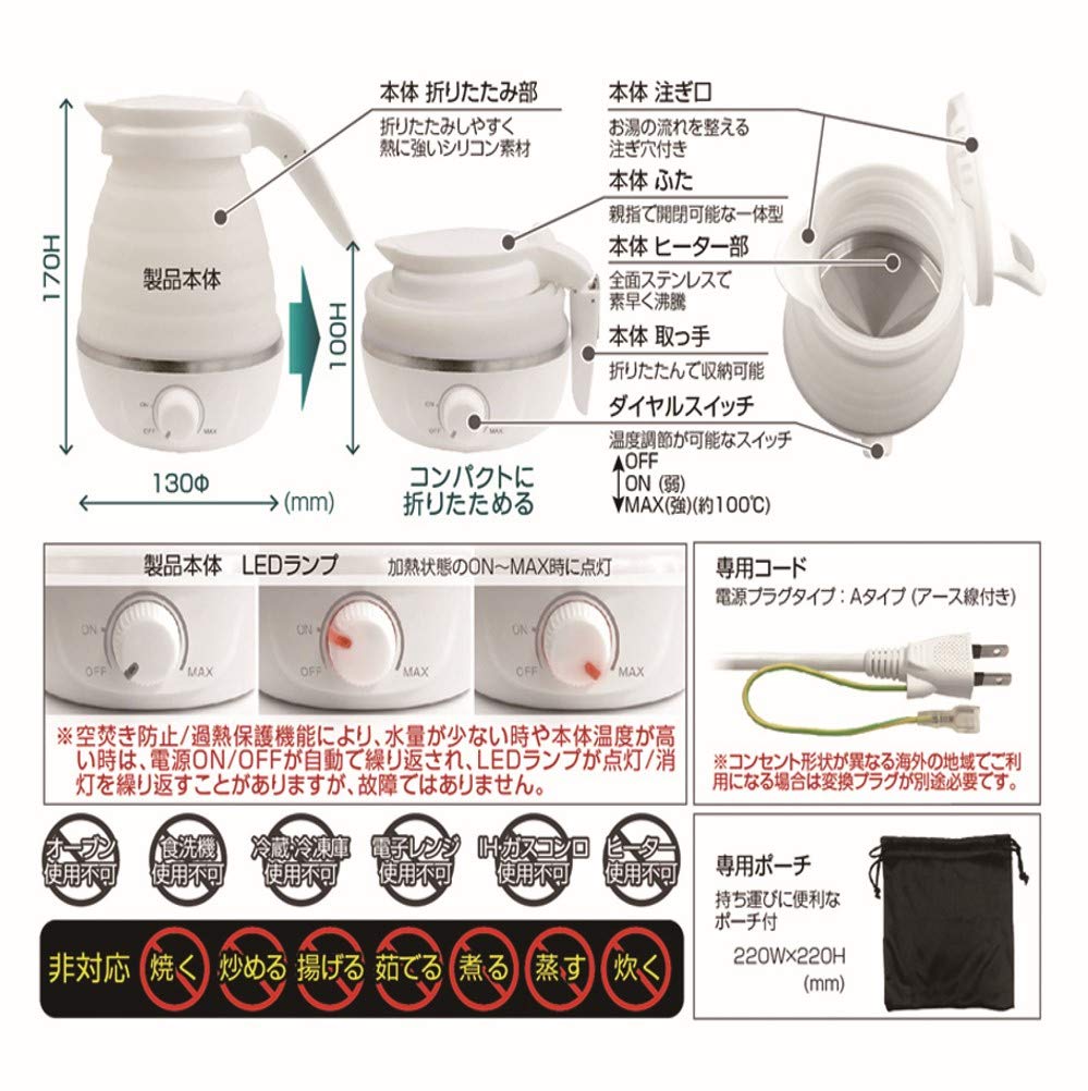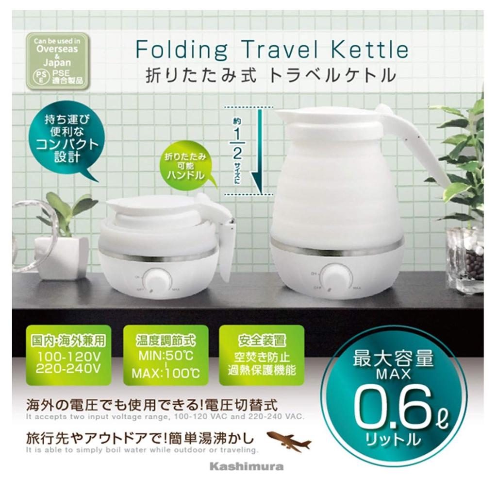 Электрический чайник Kashimura Travel для домашнего и международного использования, регулировка температуры, емкость, белый, складной, функциональный, 600 мл, NTI-191, маленький,
