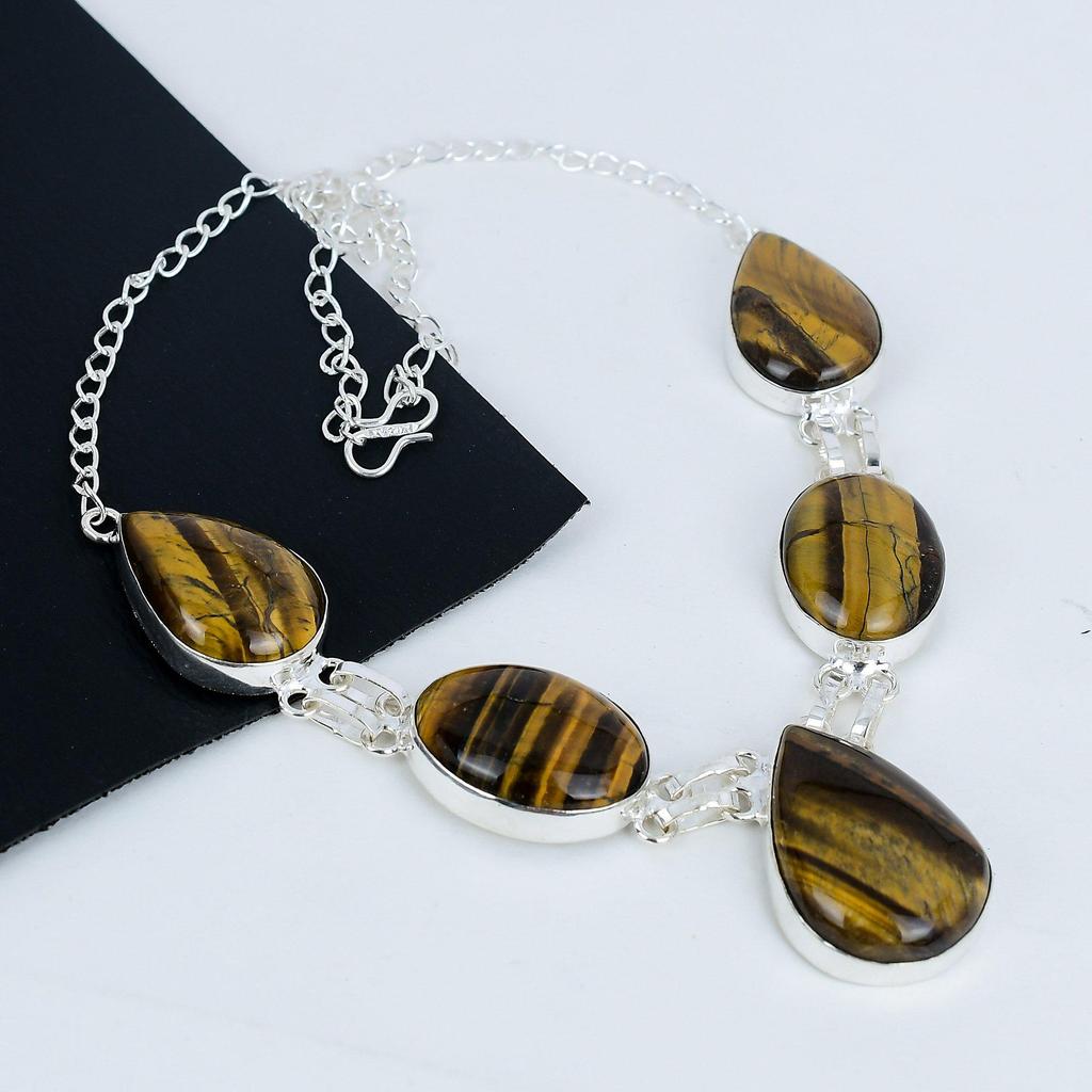 Ожерелье из серебра 925 пробы с натуральным тигровым глазом, серебряное ожерелье с тигровым глазом для жены, ожерелье унисекс, подарок на День матери