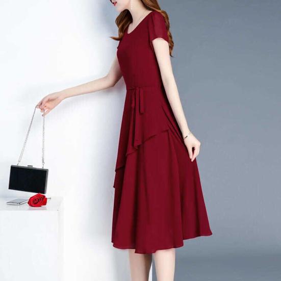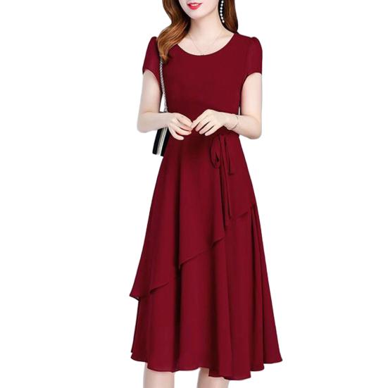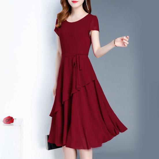 Это элегантное платье изготовлено из мягкого и легкого полиэстера, обеспечивающего комфорт в течение всего дня.. Шнуровка на талии подчеркивает изгибы фигуры, создавая изящный силуэт.. Это однотонное платье идеально подходит для разных случаев и излучает элегантность и стиль..
