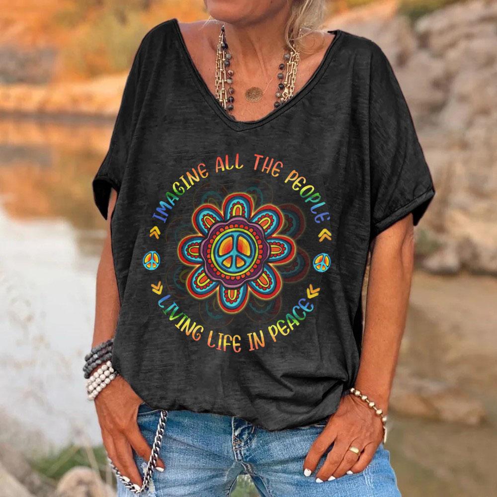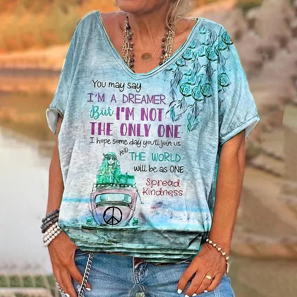 Женская футболка, винтажная футболка с буквенным принтом и короткими рукавами, повседневные выходные, базовая футболка с v-образным вырезом для девочек, женская одежда, летние топы большого размера