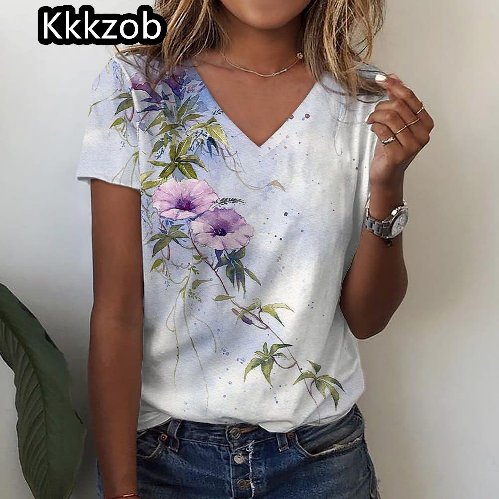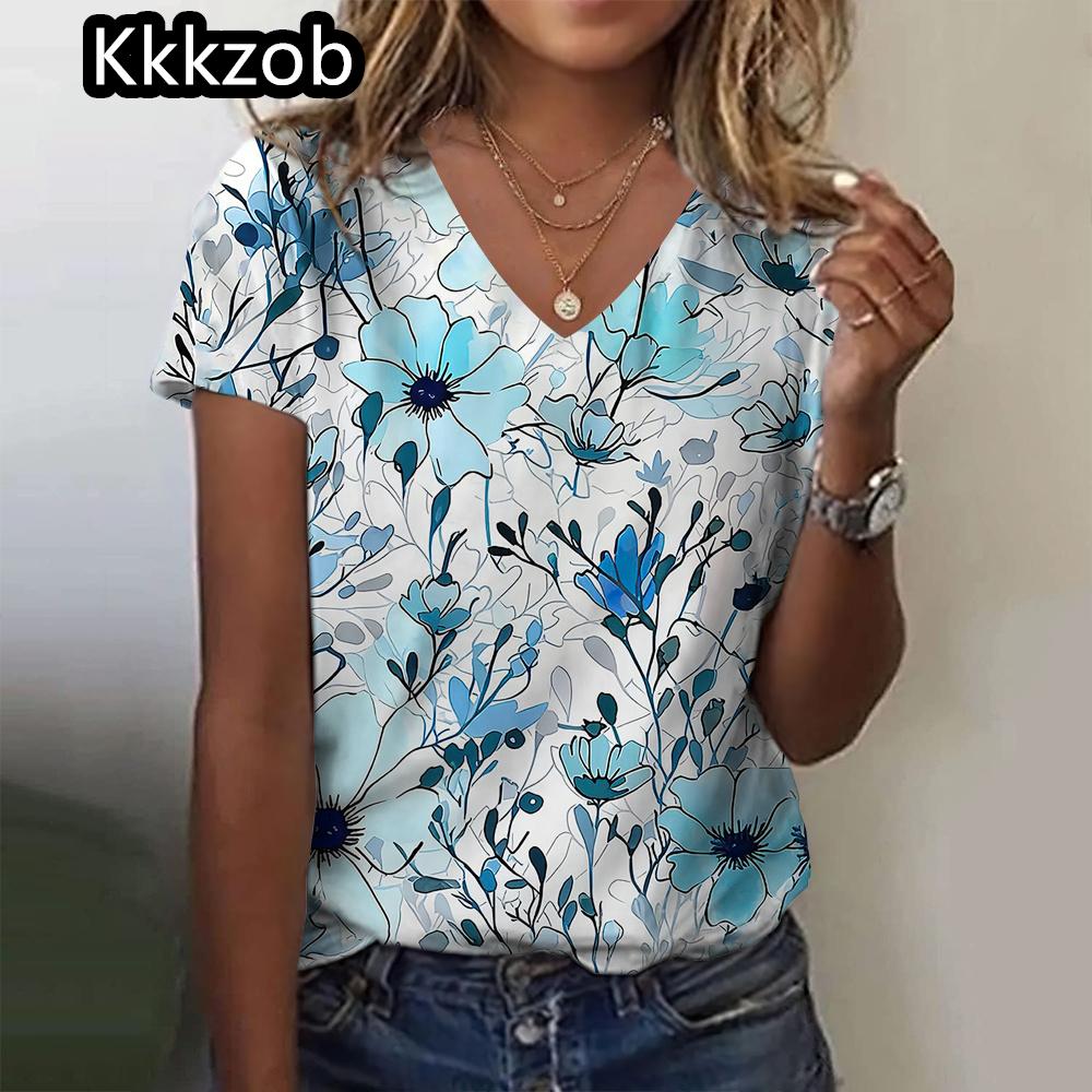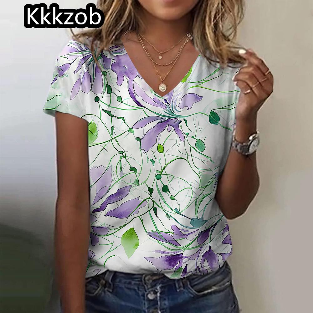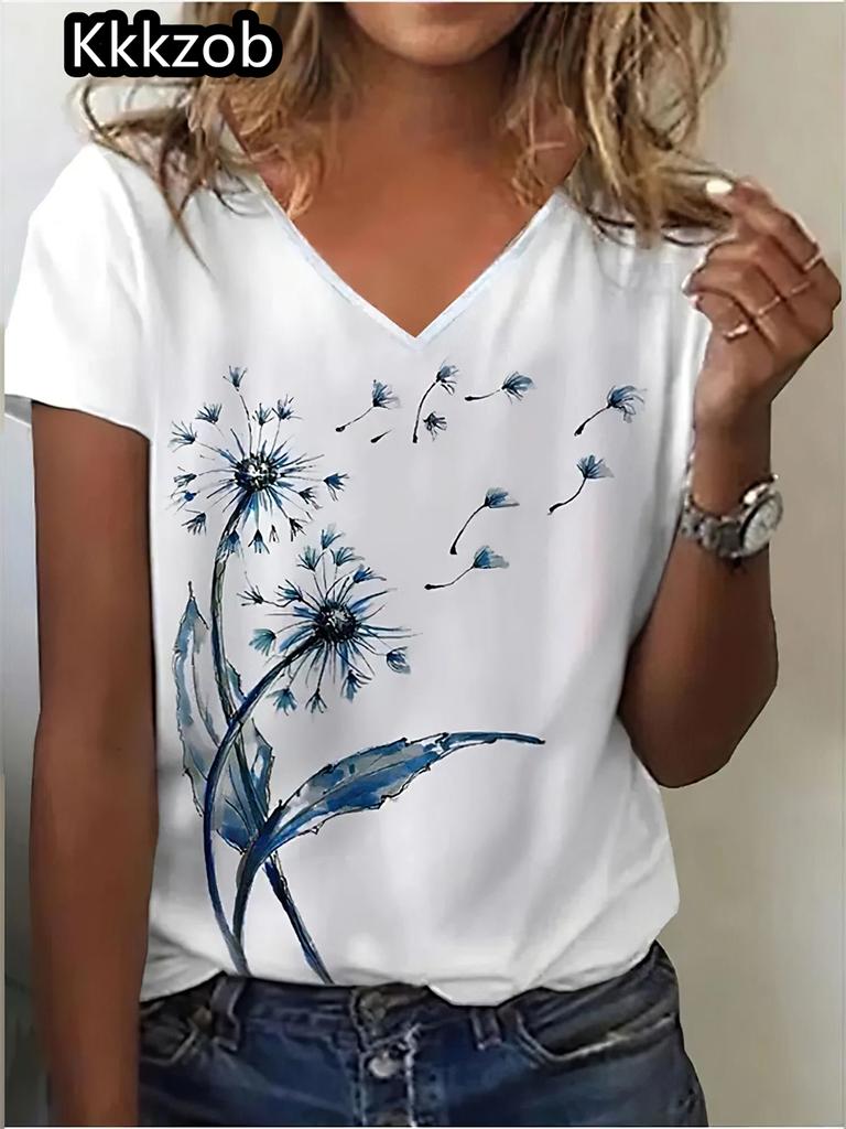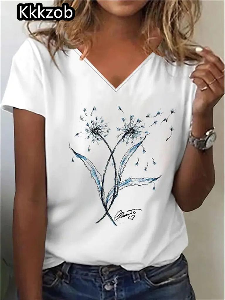 Простая графическая печать свободного покроя женская трендовая одежда новая женская футболка модная рубашка с коротким рукавом женская блузка с V-образным вырезом 2025