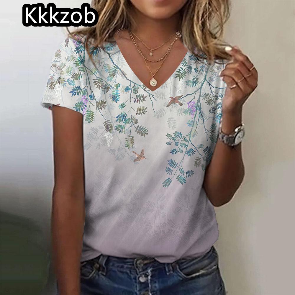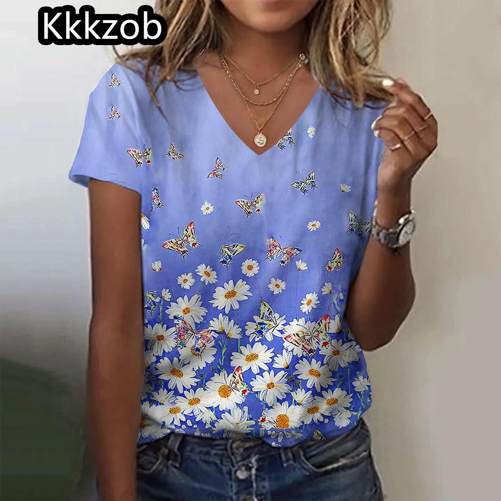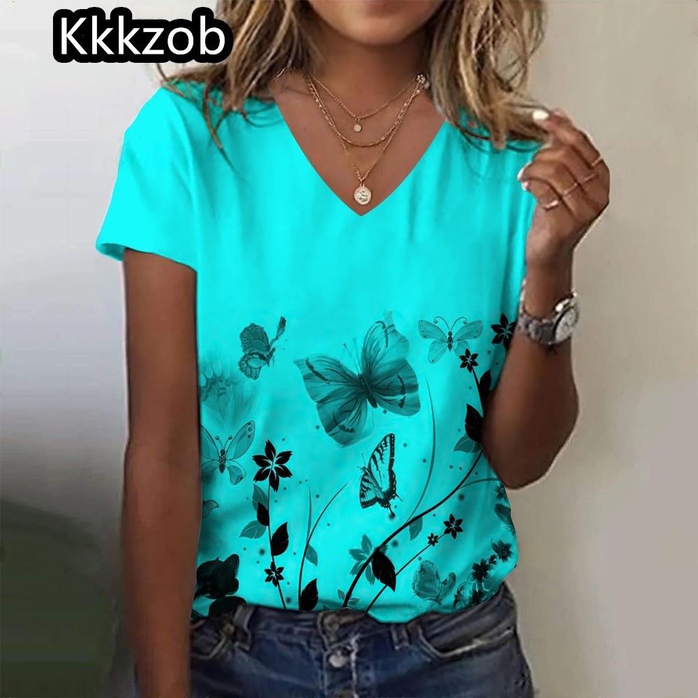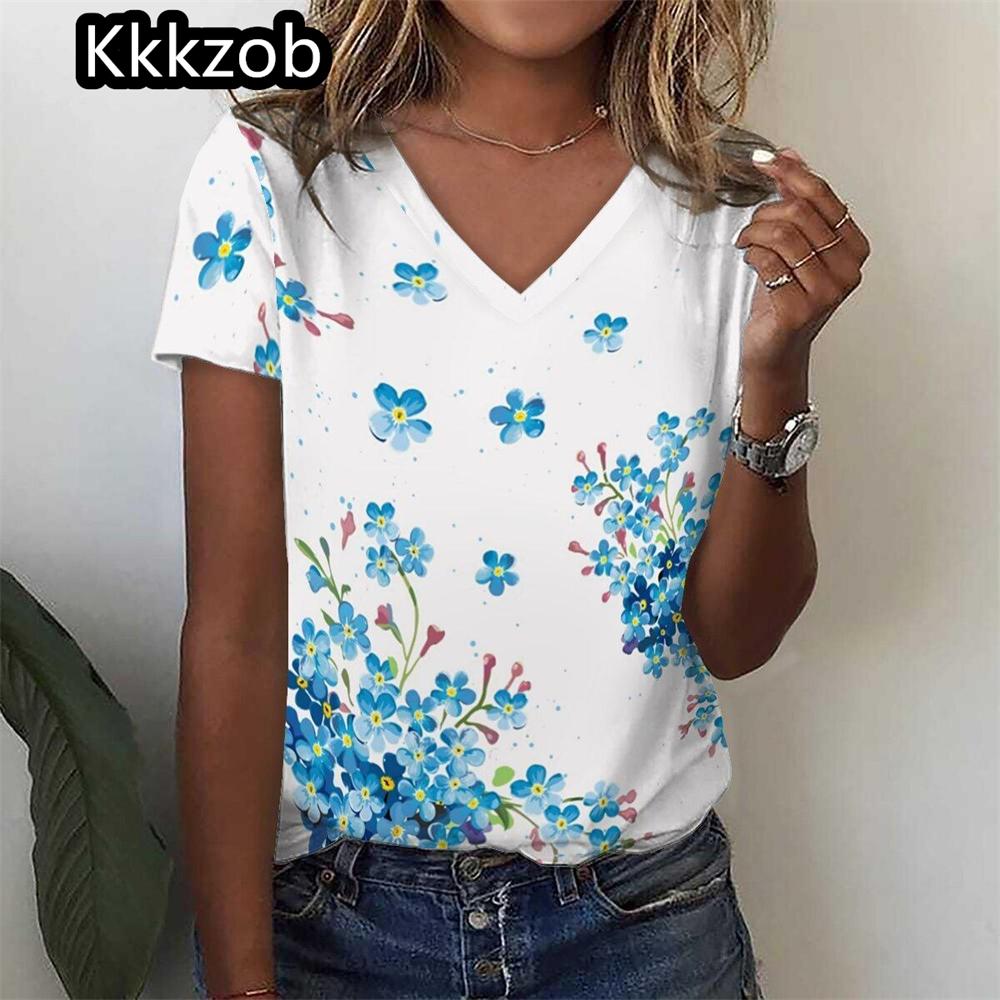 Простая графическая печать свободного покроя женская трендовая одежда новая женская футболка модная рубашка с коротким рукавом женская блузка с V-образным вырезом 2025