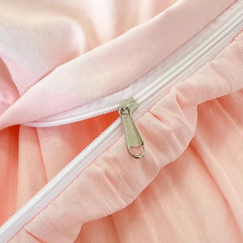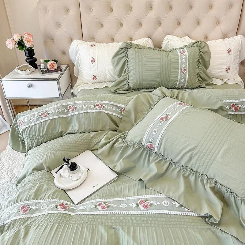 Комплект постельного белья из французского кружева с пузырьковой марлей и вышивкой, розовый, элегантный, в стиле принцессы, комплект пододеяльников в стиле королевы с оборками