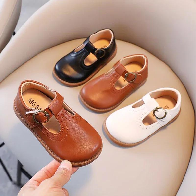 Весна-лето, однотонные детские туфли Мэри Джейн для девочек, трехцветные винтажные кожаные туфли для маленьких девочек, школьные туфли для детей на плоской подошве