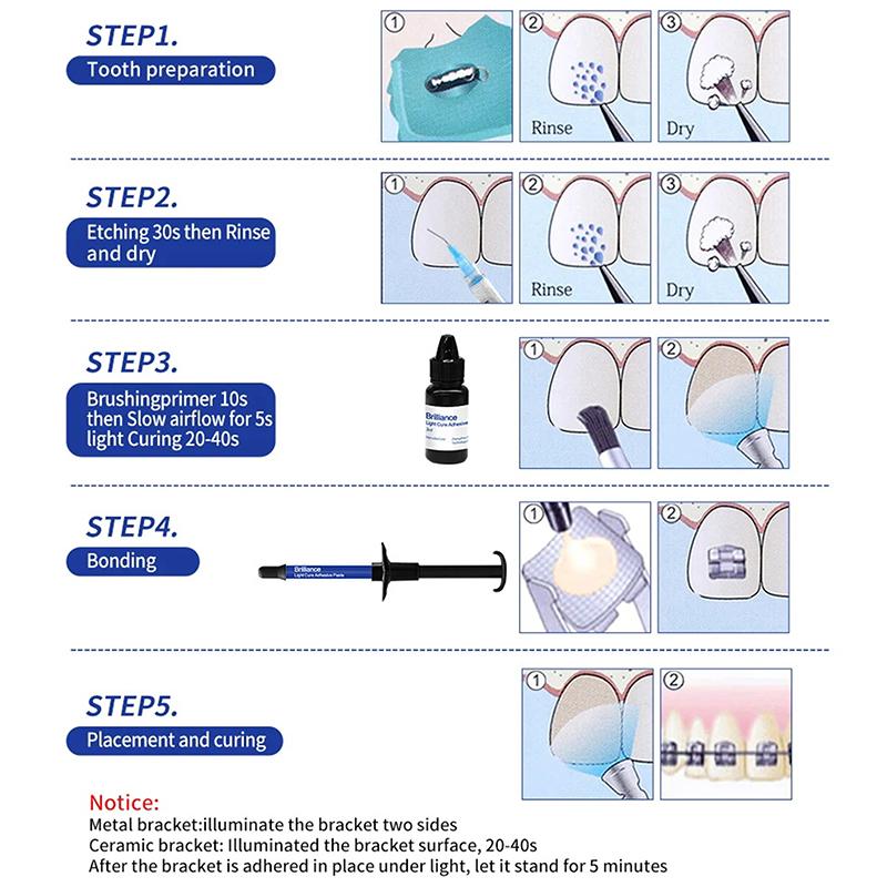 Набор стоматологических ортодонтических клеев Светоотверждаемый клей Металлические керамические брекеты Брекеты Невидимое крепление Стоматологические инструменты Материалы для стоматолога