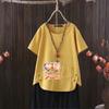 Футболка женская из хлопка и конопли с V-образным вырезом и принтом Nordic Balloon Series 2025 года — повседневная и шикарная