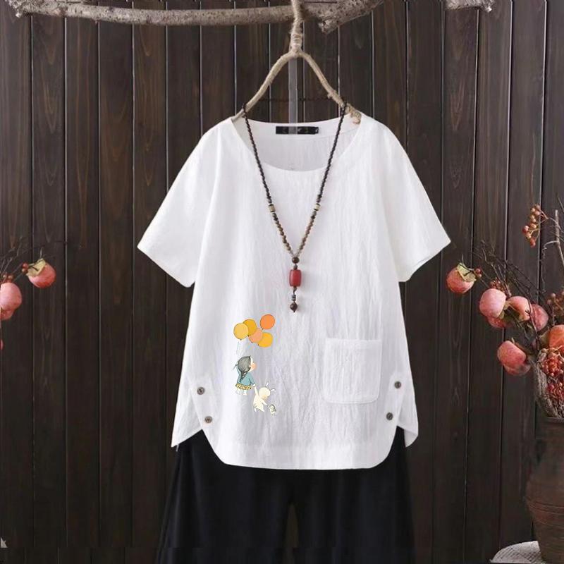 Футболка женская летняя 2025 года из хлопка и конопли с принтом серии воздушных шаров и V-образным вырезом — купить товар онлайн с бесплатной доставкой по всему миру!