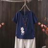 Летняя женская футболка Nordic Balloon Series с V-образным вырезом из хлопка и конопли 2025 года — стильно и непринужденно