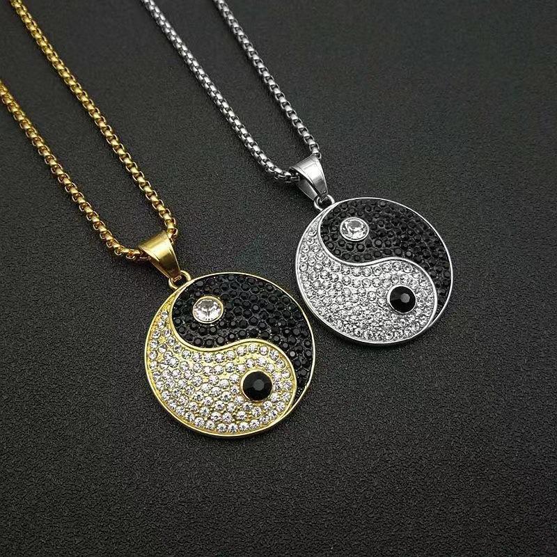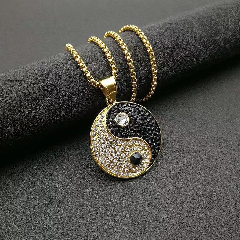Ювелирное изделие Позолоченный инкрустированный циркон Тайцзи Инь Ян Черно-белый кулон
