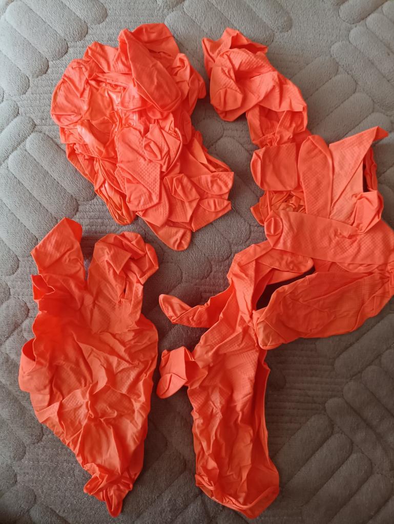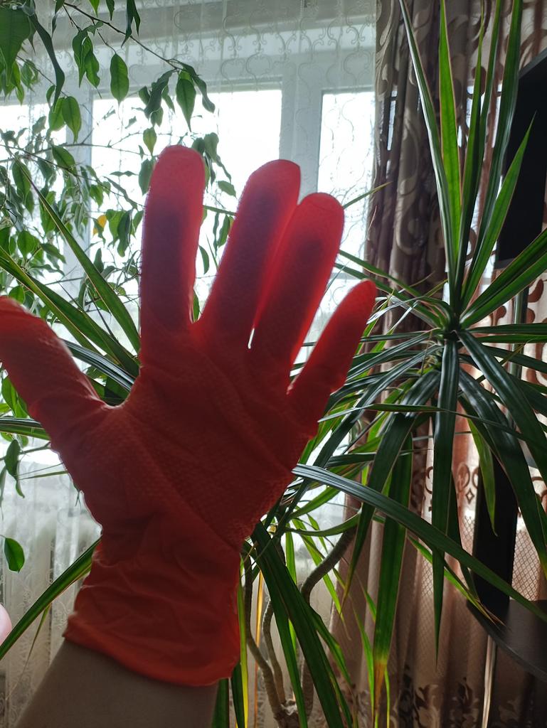 Спасибо за доставку! Товар пришёл в сборной посылке, что очень удобно. Заказала второй раз, про запас, чтобы были, так как качественные перчатки, тонкие, но ооочень крепкие. Для работы в огороде сначала одеваю тонкие тканевые перчатки (смотреть фото), а сверху эти резиновые. Очень удобно, когда нужно быстро снять резиновую перчатку, да и руки так не потеют. Заказывала самый маленький размер, но они мне великоваты, на фото видно. А с тканевыми перчатками боле менее сидят. К покупке рекомендую! 👍👍👍