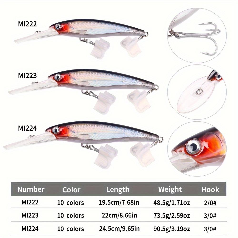 1 шт., разноцветная длинная приманка для ловли рыбы Minnow 7,68 дюйма/8,66 дюйма/9,65 дюйма, 48,5 г/73,5 г/90 г, крючки, инструменты для рыбалки из ПВХ