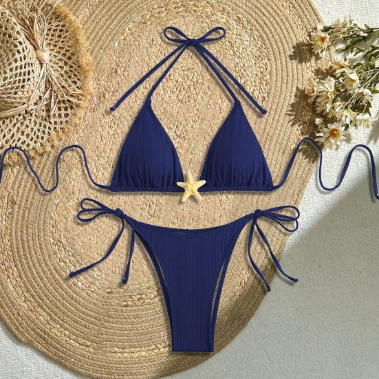 Женский комплект бикини с завязками по бокам, двухсекционный купальник с декором в виде морской звезды, сексуальный треугольник — купить товар онлайн с бесплатной доставкой по всему миру!