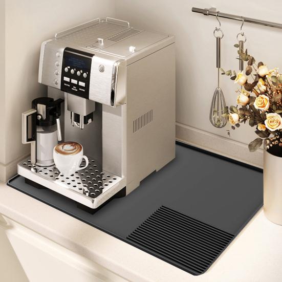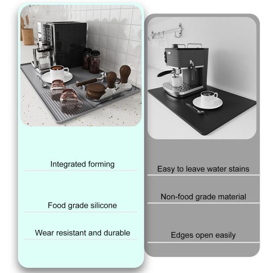 Представляем силиконовый коврик для кофе — универсальное и практичное дополнение к вашей кухне.. Эта дренажная накладка имеет встроенную полосатую конструкцию с канавками, которая обеспечивает быстрое высыхание, а приподнятые края помогают удерживать жидкость и предотвращают случайные проливания.. Изготовленный из водонепроницаемого силикона, этот коврик защитит вашу столешницу от протечек и пятен..