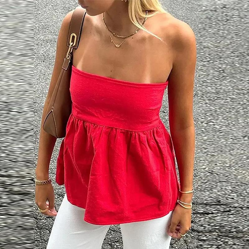 Топ без бретелек женский корсетный топ с открытыми плечами розовый белый красный синий топ без бретелек без рукавов укороченный топ для женщин 2024