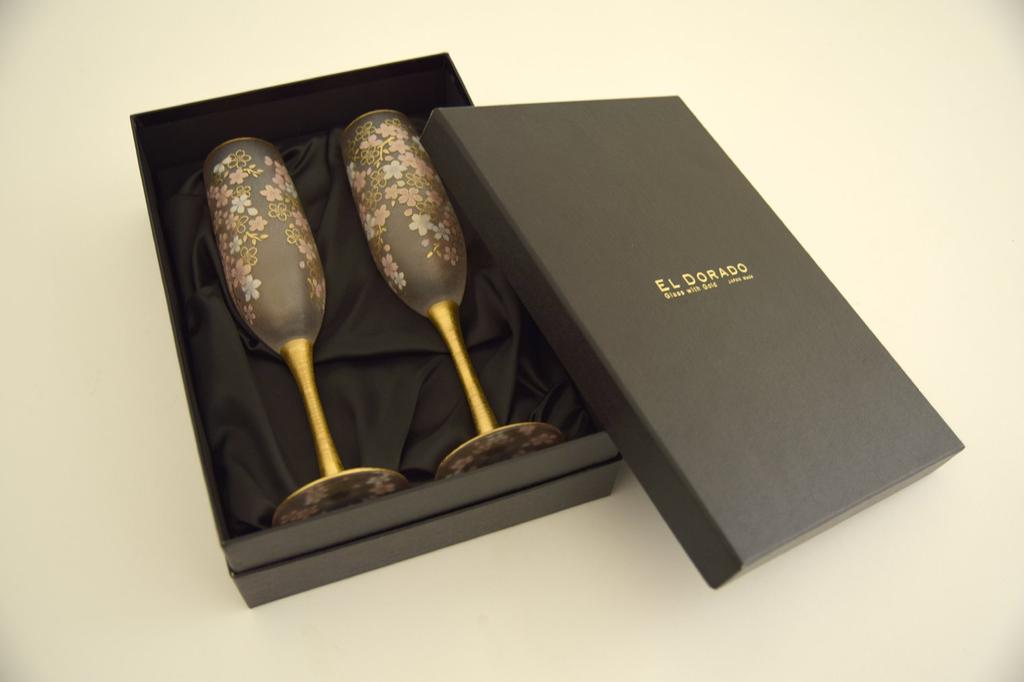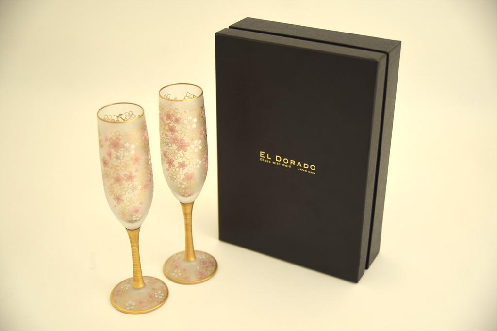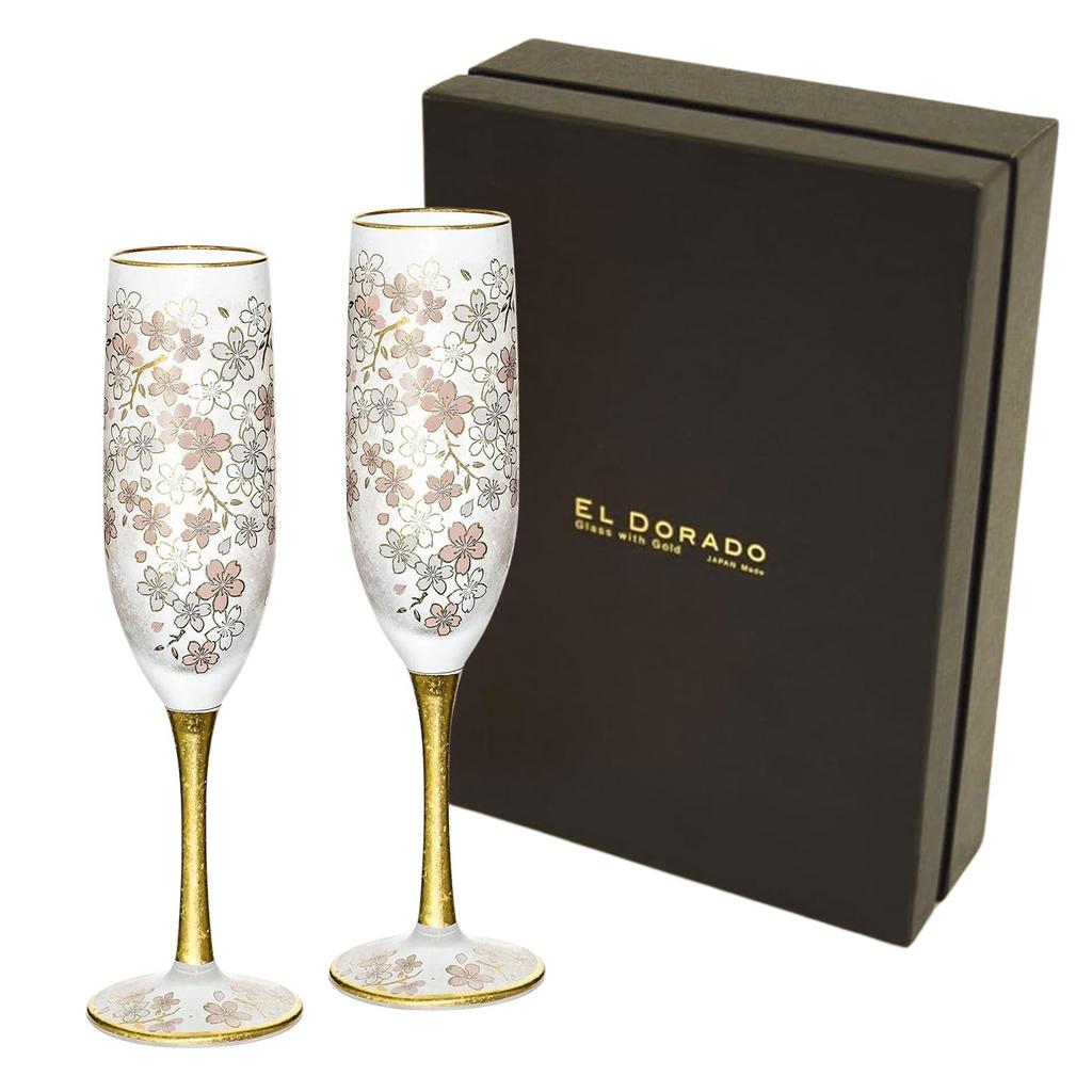 ADERIA El Dorado Cherry Blossom Flute Champagne Fair Set 180ml Made in Japan Presentation Box Wine Cocktail Sparkling Style Gift Women's Day