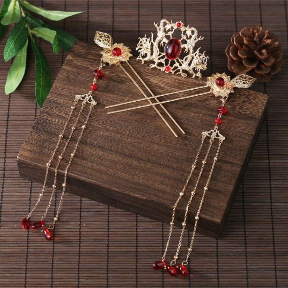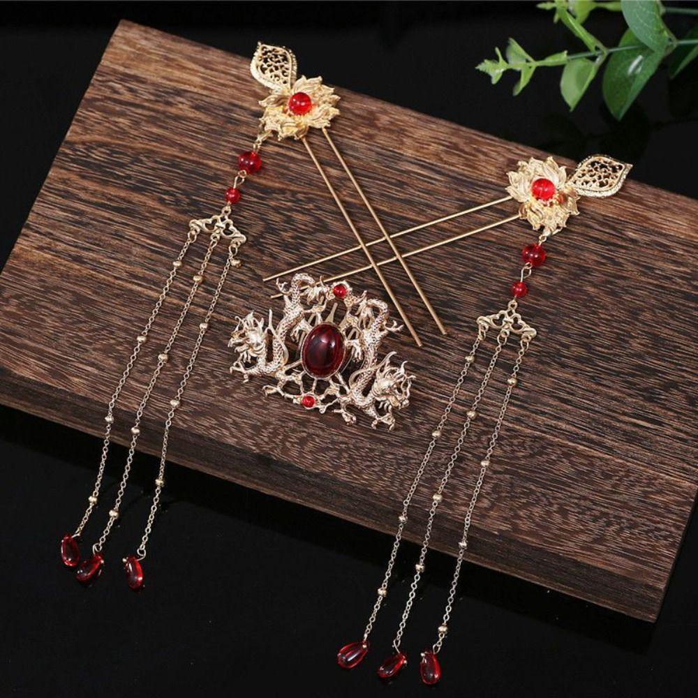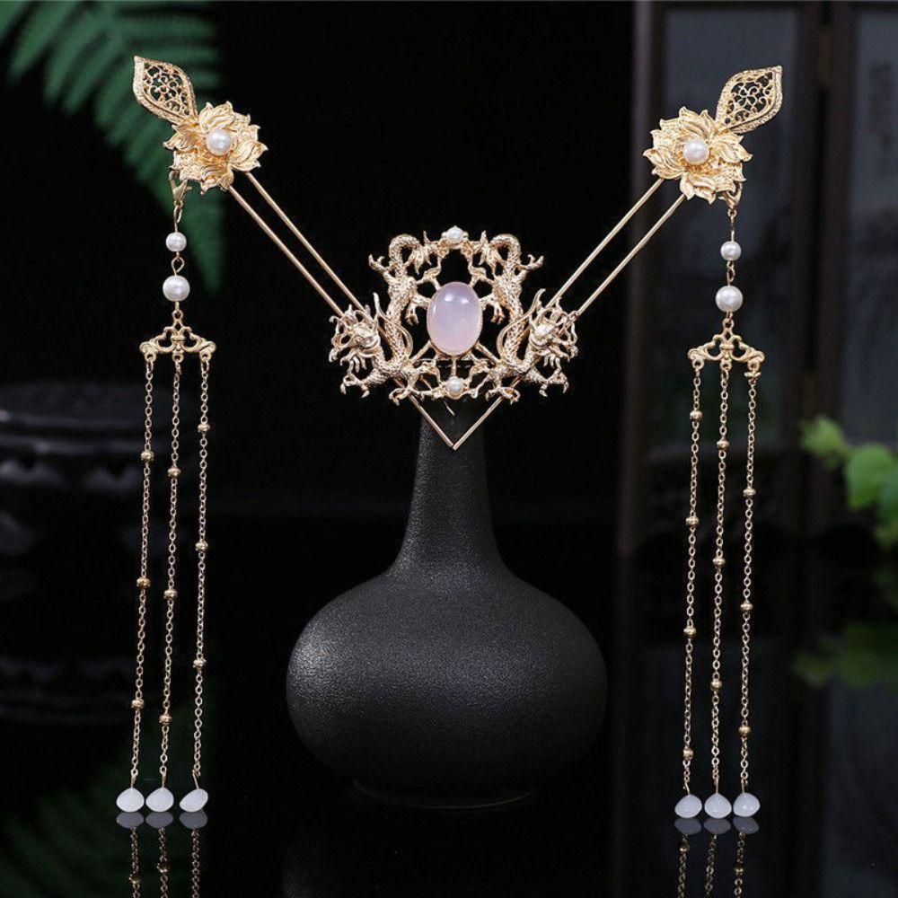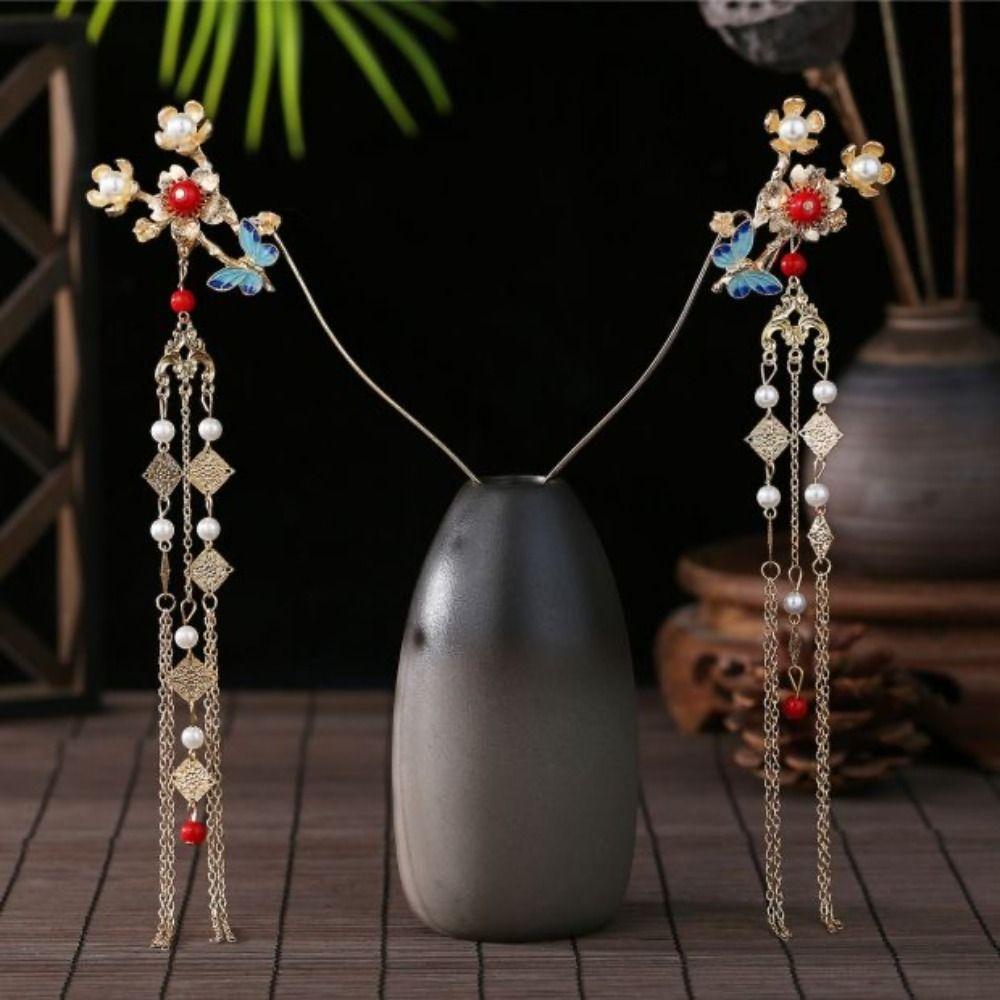 Заколка для волос с кисточками из жемчуга и цветка в китайском стиле в стиле ретро-ханьфу, набор палочек для волос ханьфу