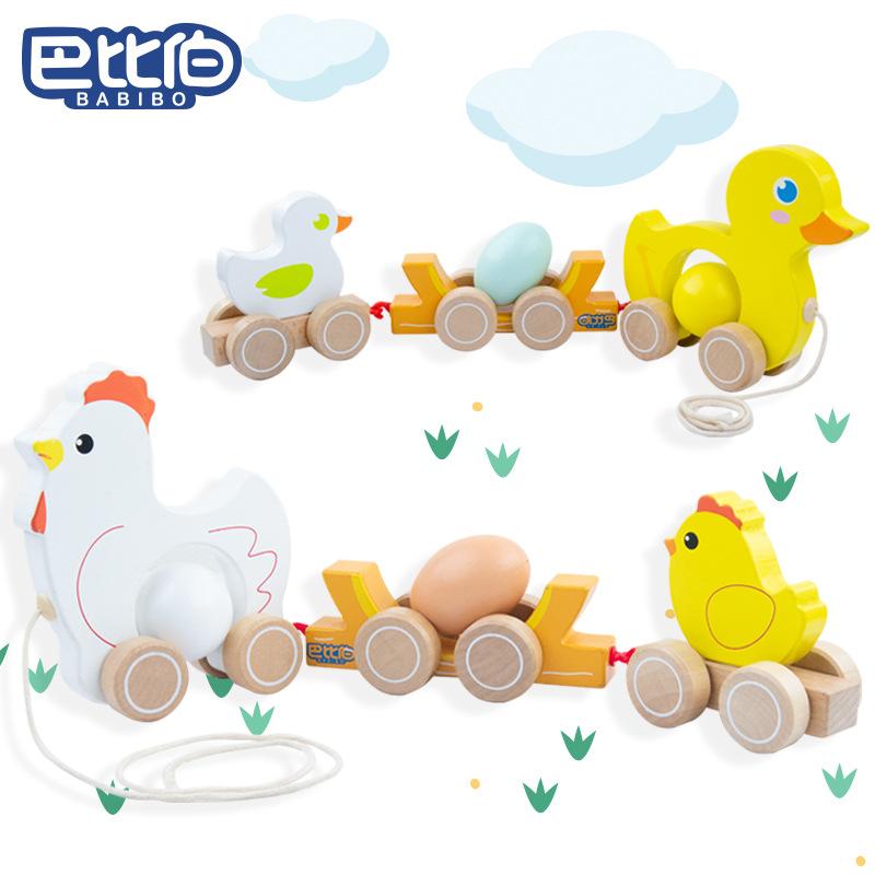 BABIBO Детская деревянная комбинация животных Раннее развитие Деревянная головоломка-каталка Интеллектуальные строительные блоки Игрушечная машинка Костюм на день рождения