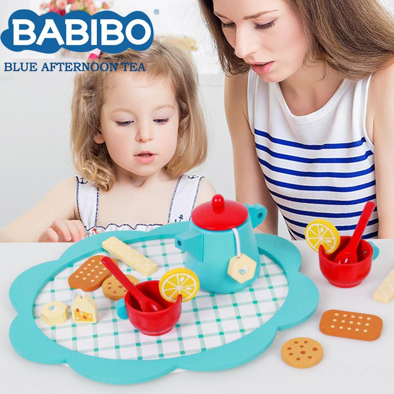BABIBO Детский игровой домик для симуляции Синий послеобеденный чай Познавательные игрушки/еда Чай Столовые приборы Ролевые игры Деревянные игрушки