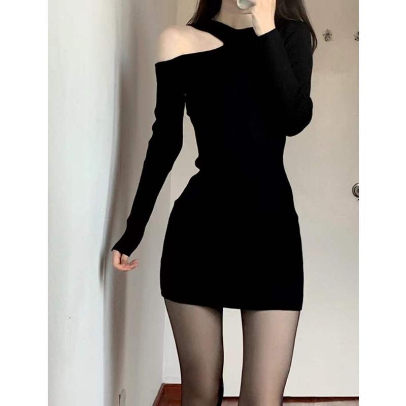 Женское облегающее однотонное платье с открытыми плечами Pure Wind Sexy Royal Sister Wind Bottom Sweater Wrapped Hip Dress
