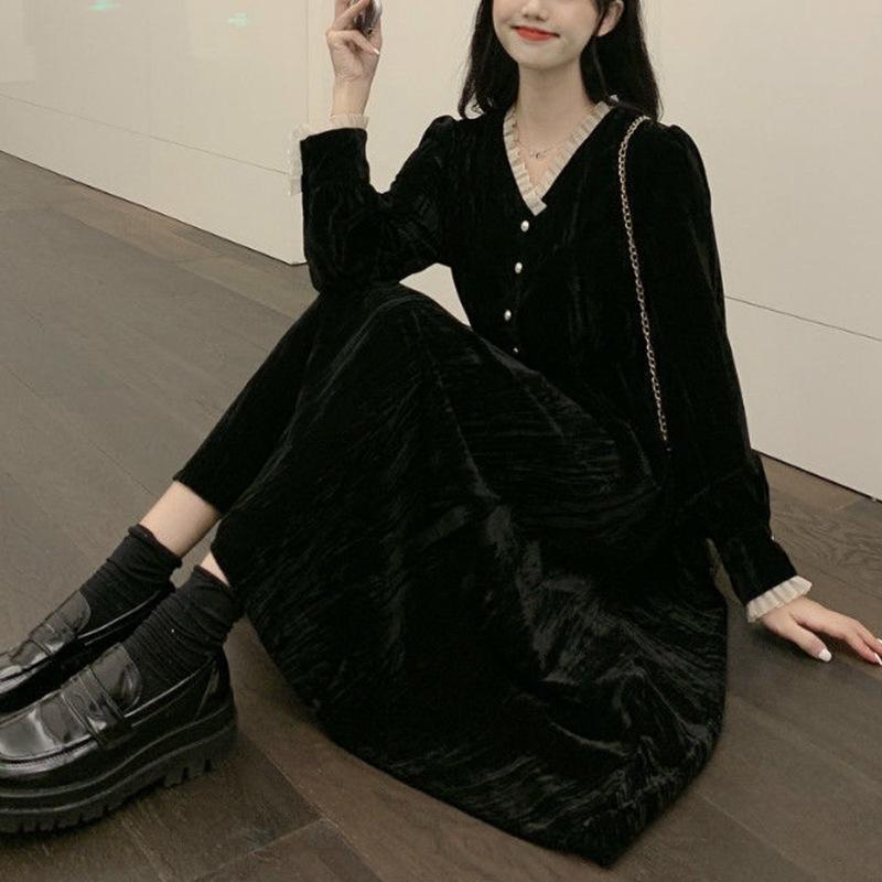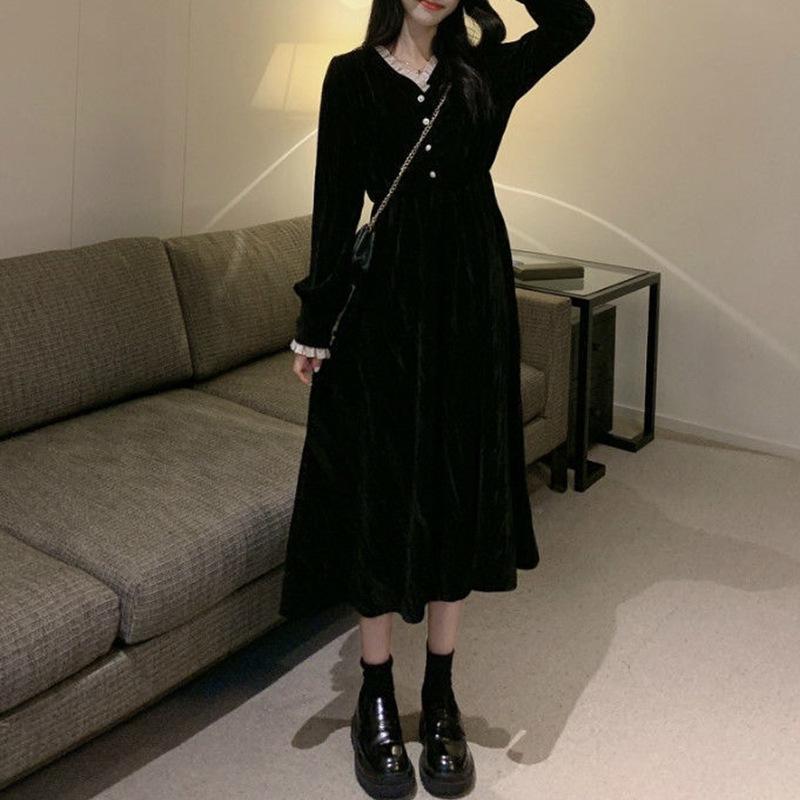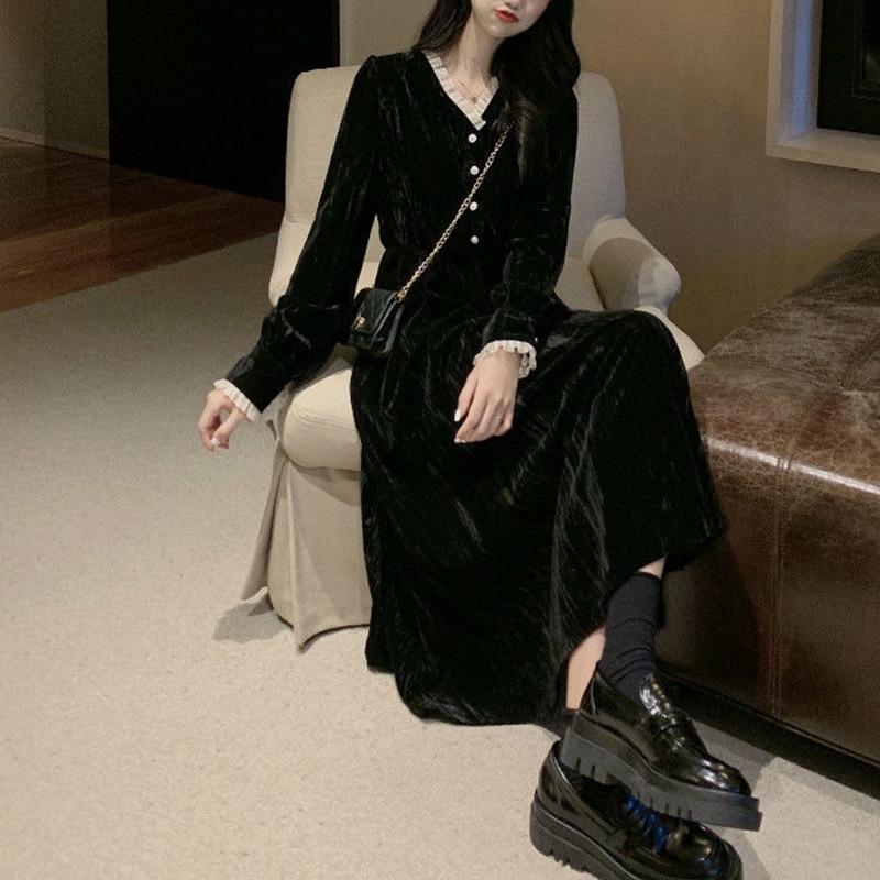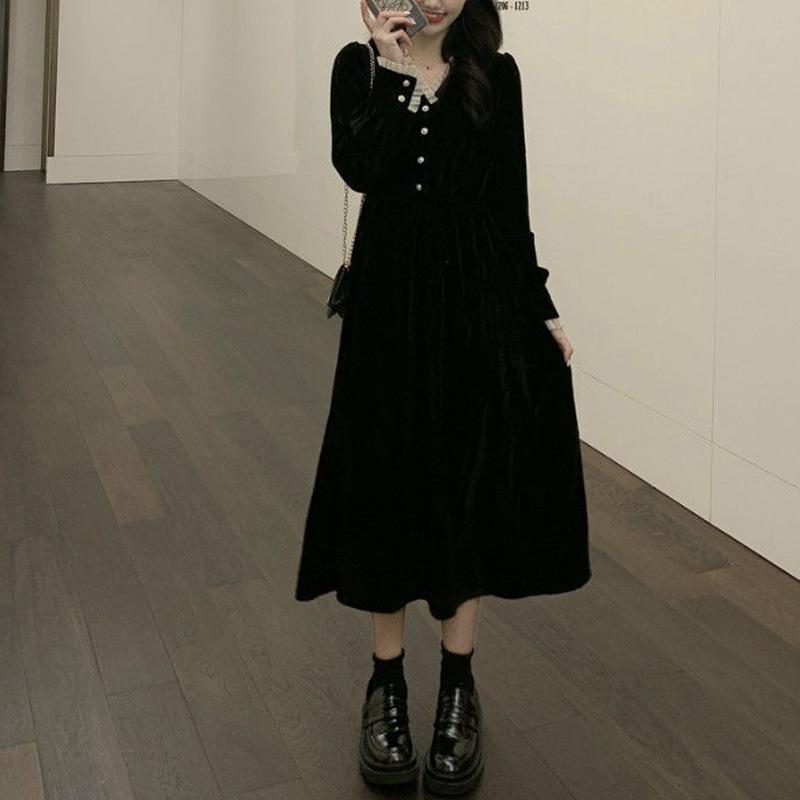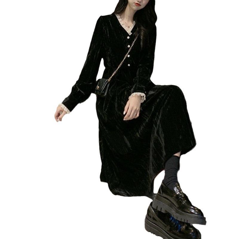 Женское французское платье-пальто в стиле ретро Хепберн с длинными рукавами, имитация платья Канареечник