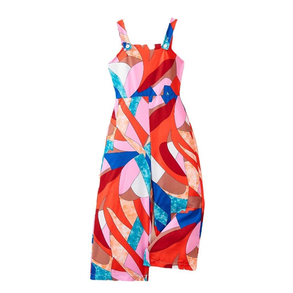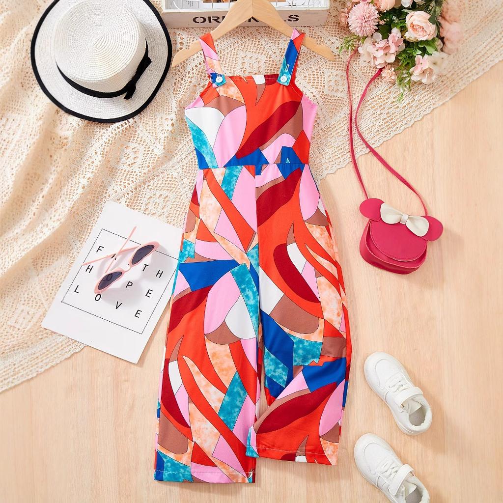 Модный тонкий комбинезон с геометрическим принтом для девочек, летний, подходит для детей в возрасте от 1 до 8 лет, летний повседневный комбинезон