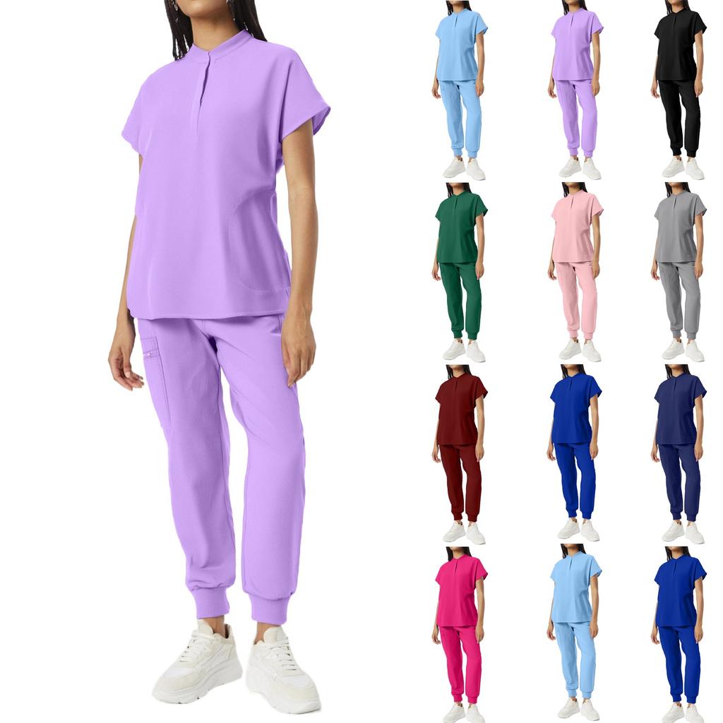 Женские однотонные брюки с короткими рукавами и карманами, брюки с завязками на ногах, комплект из двух предметов для работы