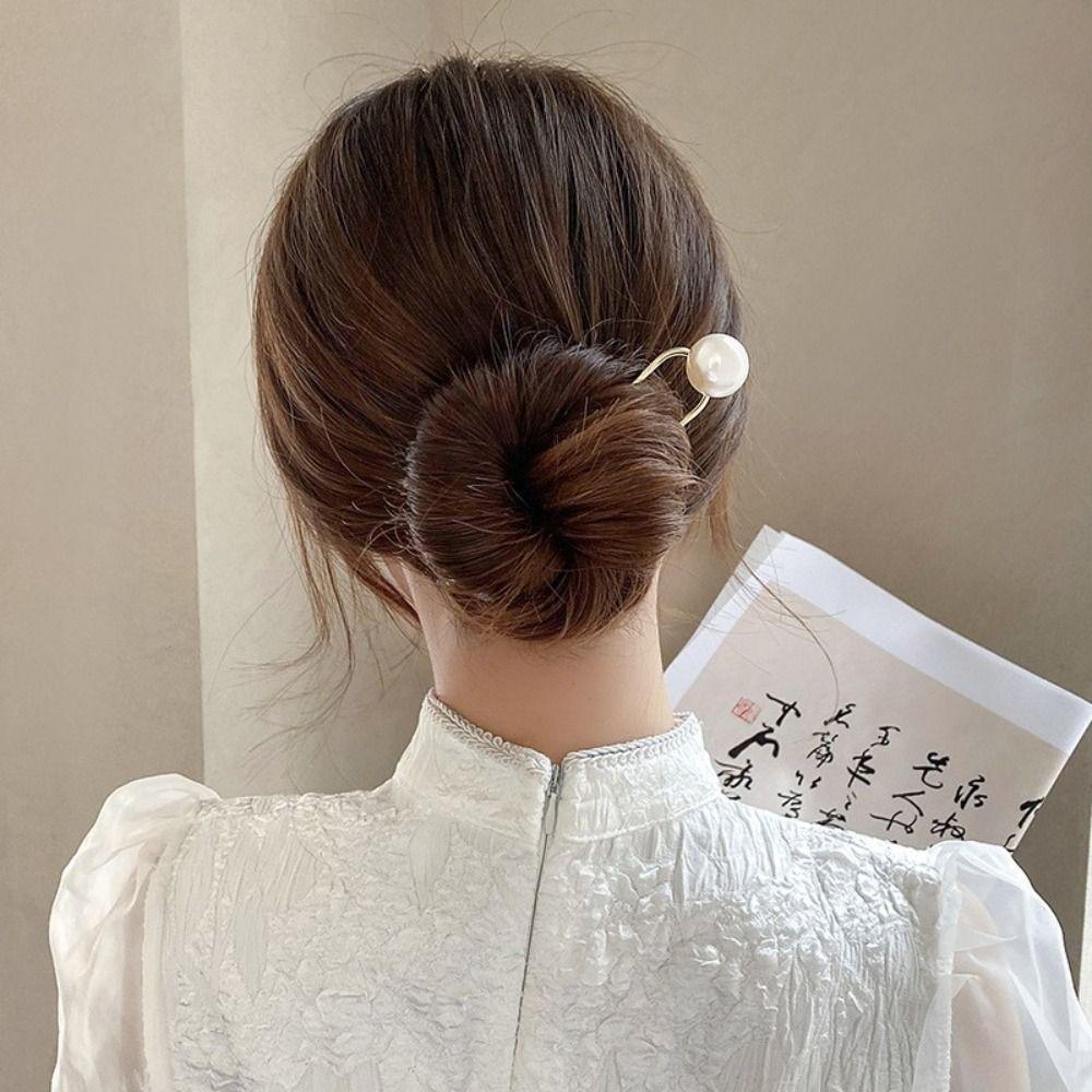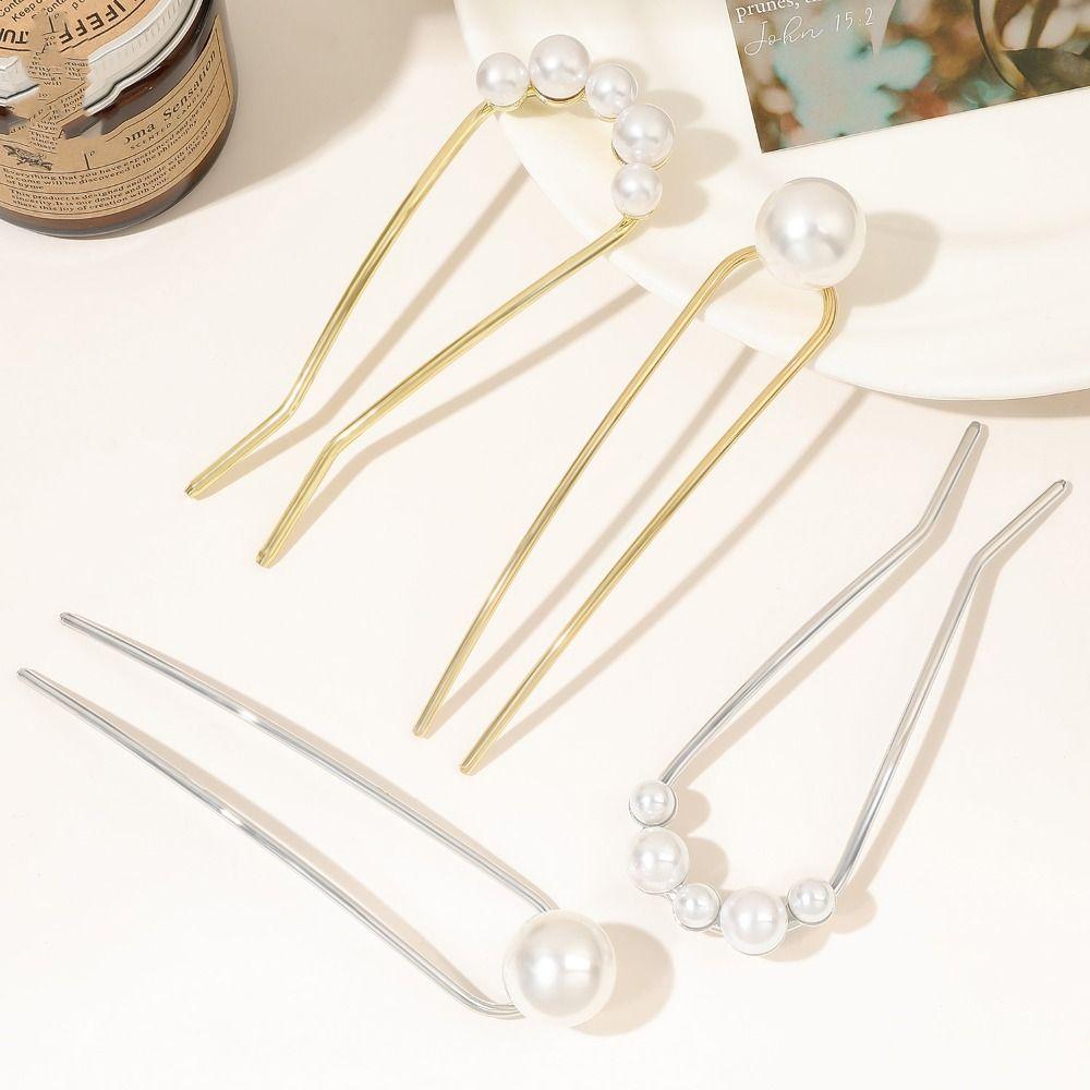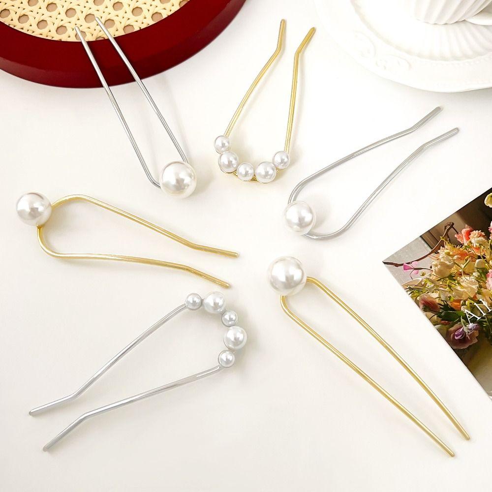 Hairpin U-shaped Hairpin Pearl Minimalist Hair Stick Vintage Metal Hair Stick Party