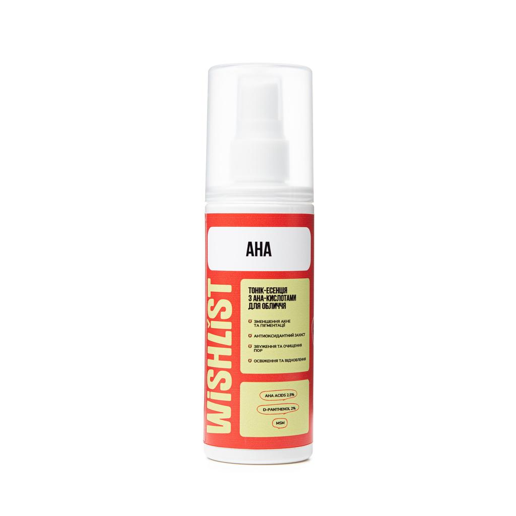 - ТОНИК-ЭСЕНЦИЯ С AHA-КИСЛОТАМИ ДЛЯ ЛИЦА WiSHLiST TONIC-ESSENCE, 120 МЛ осветляет тон кожи, стимулирует отшелушивание отмерших клеток и успокаивает воспаления. Он идеально подходит для чувствительной кожи, уменьшая покраснение и предотвращая сухость.