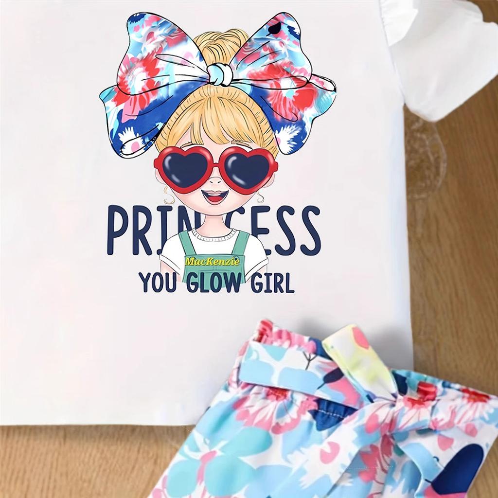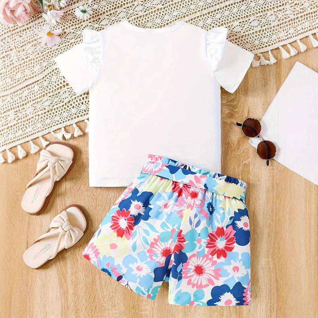 Модный комплект футболок с коротким рукавом и круглым вырезом для девочек, подходит для детей 1-8 лет, костюм для отдыха