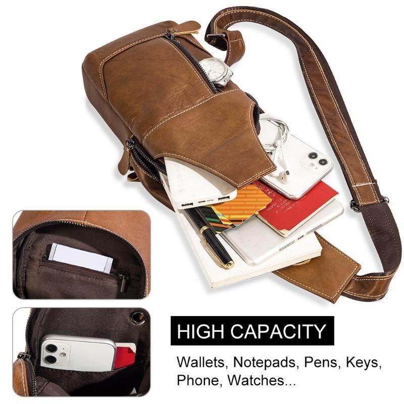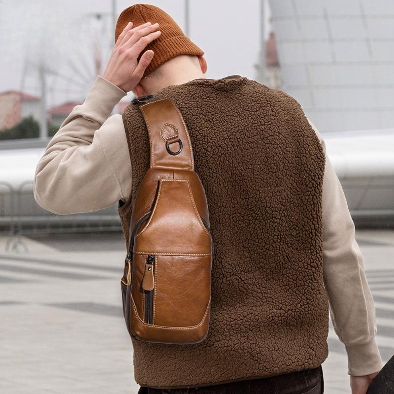 Винтажная мужская кожаная сумка через плечо на одно плечо, нагрудная сумка с верхним слоем из коровьей кожи, маленькая сумка-рюкзак