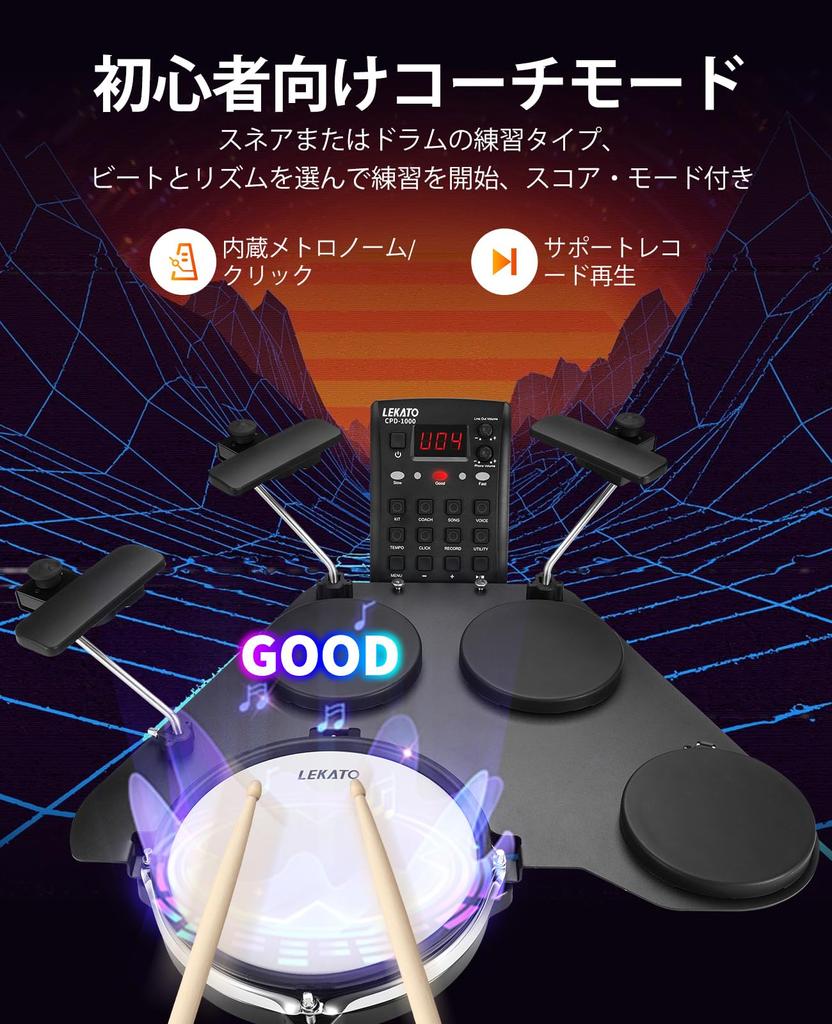 LEKATO Электронный барабан Тихий для электронных более 220 USB MIDI 2 переключателя Электронный барабанный комплект с дорожной сумкой, сетчатый, складной, для начинающих, барабаны,