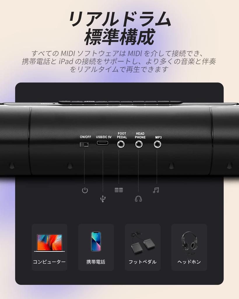 [Реальный шоковый эффект и качество звука] Благодаря двум динамикам мощностью 2,2 Вт электронный барабанный пэд Donner может наслаждаться трехмерным звуком с помощью обычных динамиков.. Также громкость можно регулировать на 9 уровнях.. Он также оснащен функцией записи длительностью 180 секунд, что позволяет вам записывать свое музыкальное вдохновение в любое время и в любом месте.