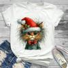 Хлопковые футболки с рисунком кота Санта-Клауса для женщин, кавайная одежда, Harajuku, большие рождественские женские футболки, футболка унисекс