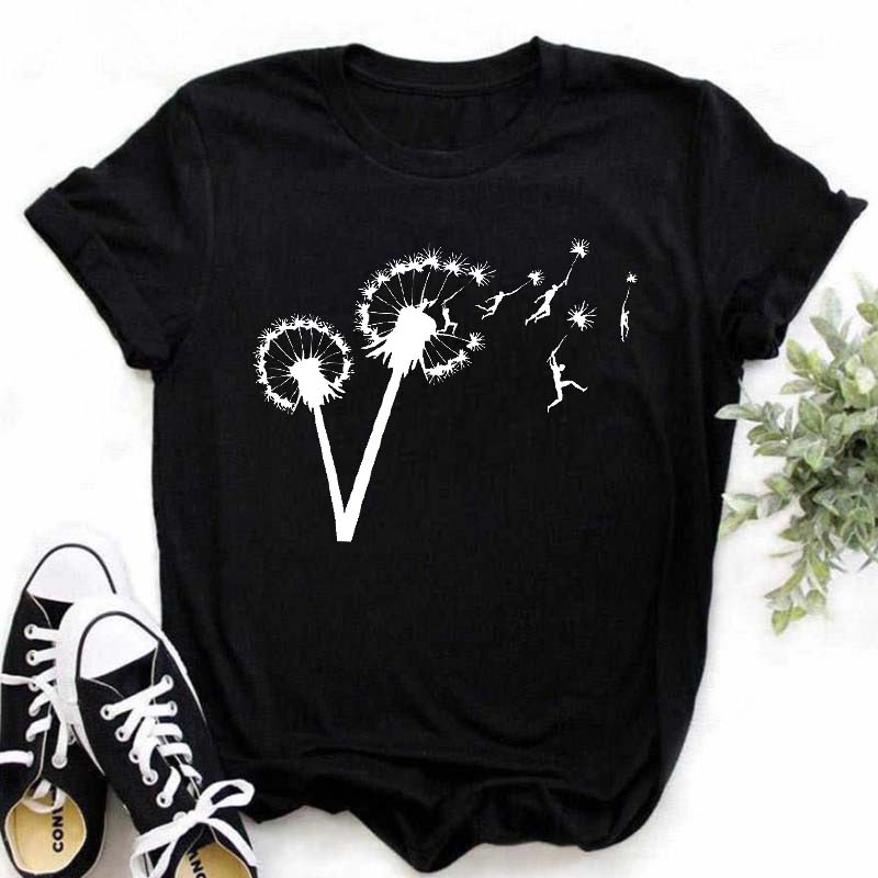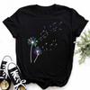 Летняя женская футболка с принтом одуванчика, свободные женские рубашки больших размеров, повседневная футболка с коротким рукавом, топ, черные модные футболки с круглым вырезом