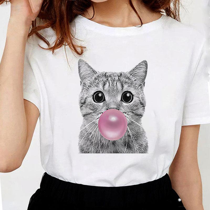 Харадзюку Летняя Женская Футболка Принт Жвачки Французский Бульдог Эстетичная Одежда Графическая Футболка